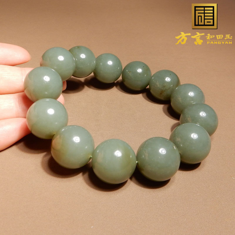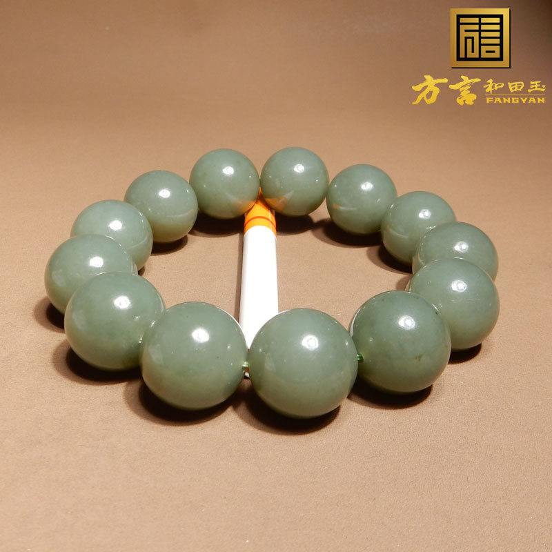惊呆了方言和田玉精品收藏级新疆且末蓝色基调带糖18mm圆珠手串A0