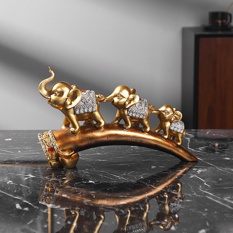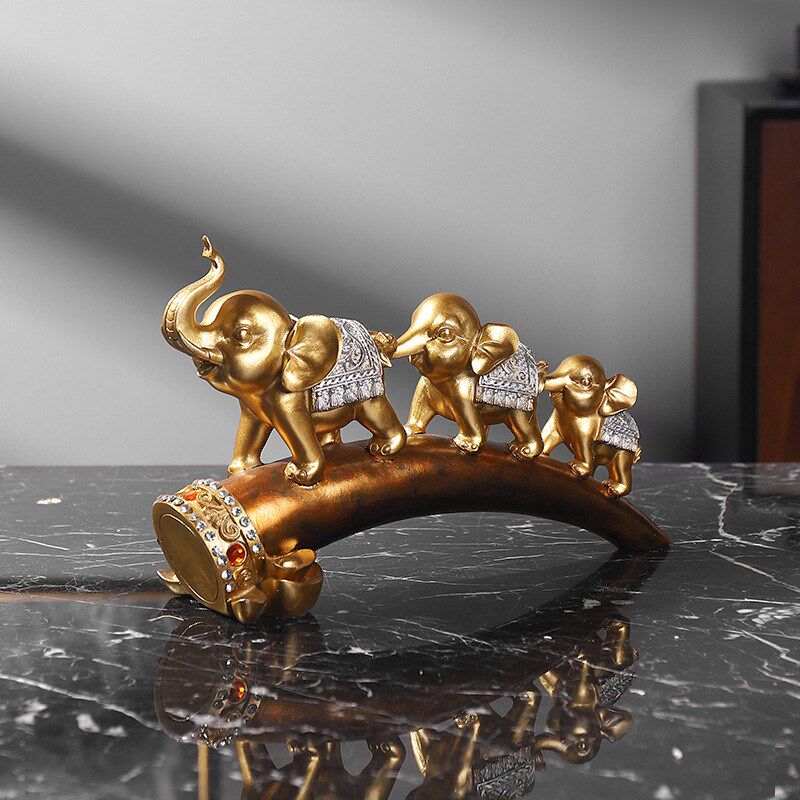 现代简约招财三连象欧式大象家居装饰品摆M件客厅电视柜酒柜桌面