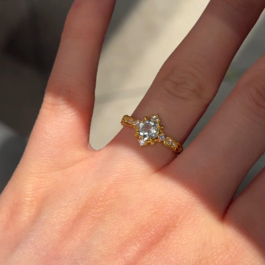 复古铃兰花蓝色宝石活口戒指女小众日系清新镶嵌指环时尚轻奢手饰