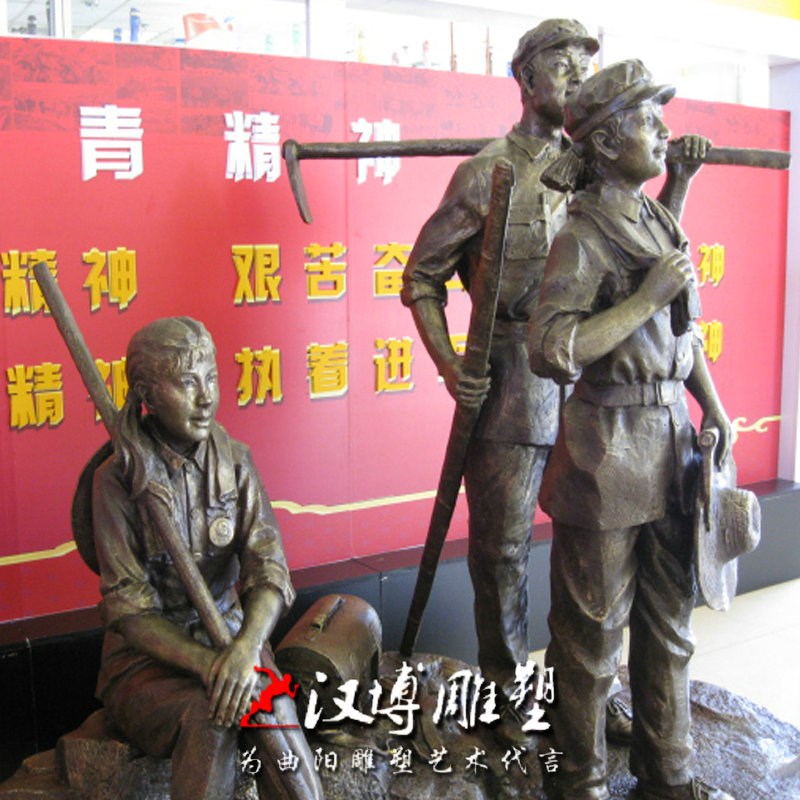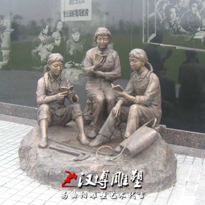 定制铸铜人物雕塑玻璃钢知青下乡读书雕像城市博物馆军区景观小品