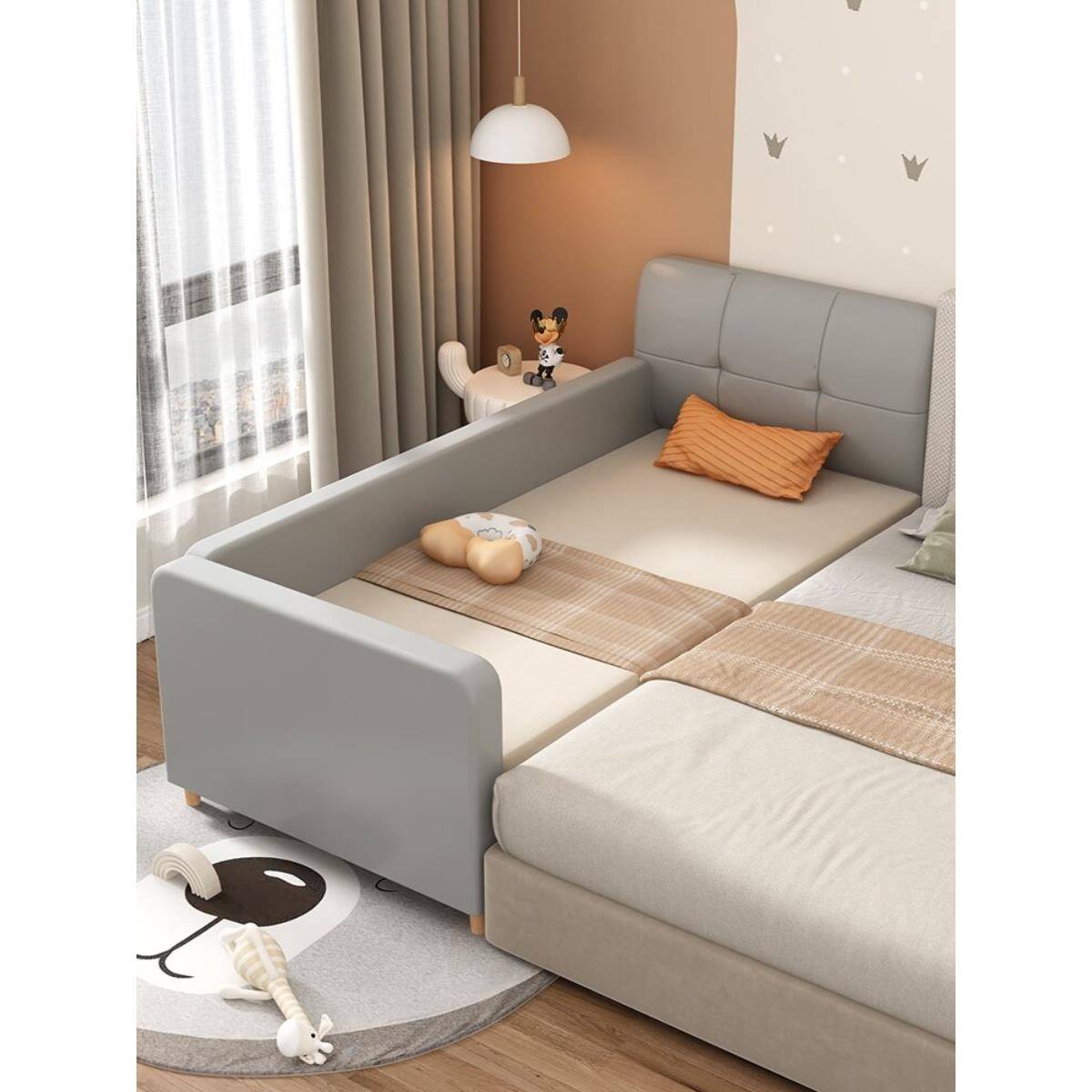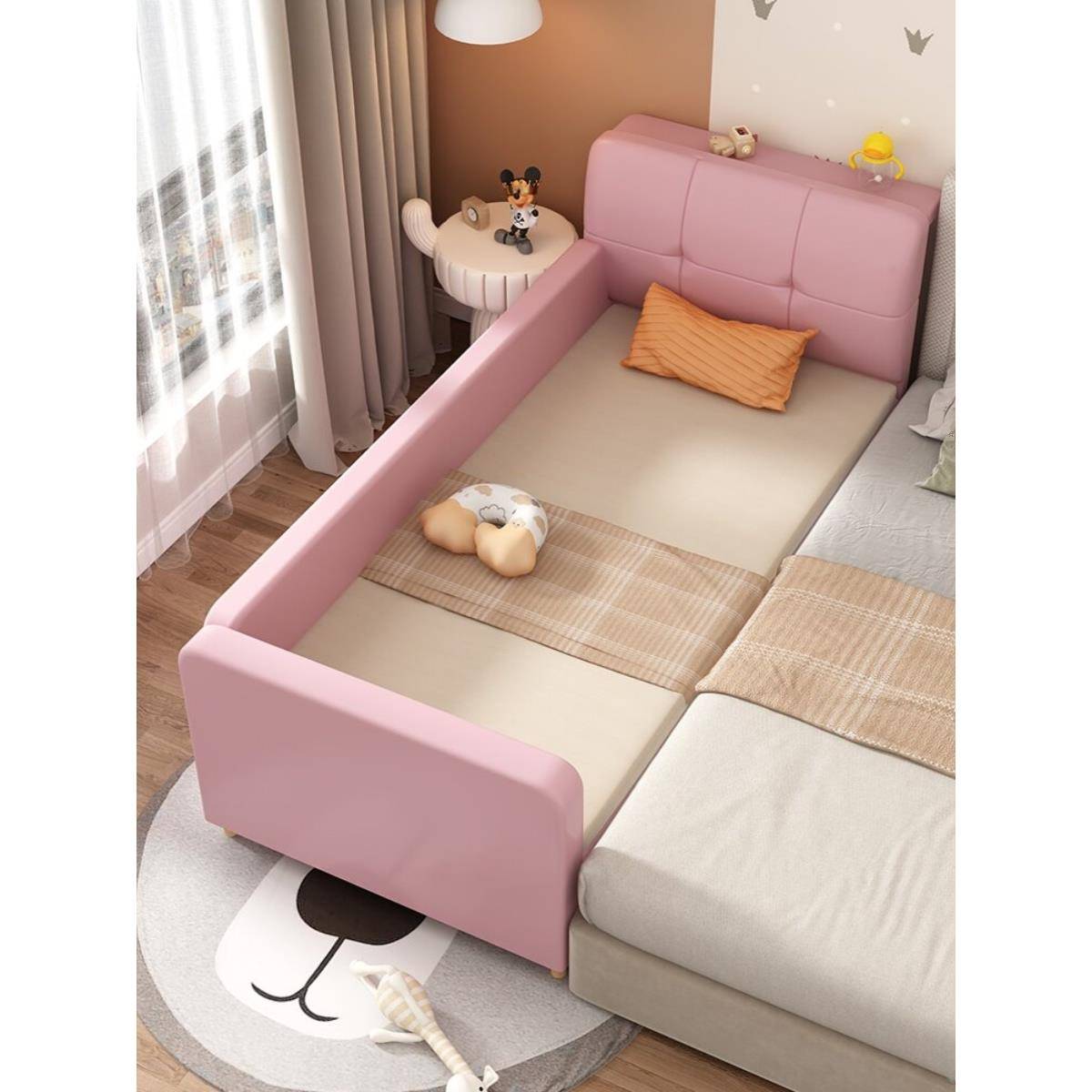 ft儿童床实木带护栏婴儿宝宝床男女孩单人床加宽拼接床小床拼接大