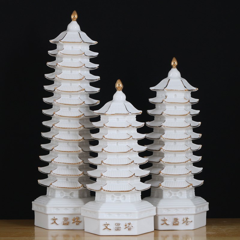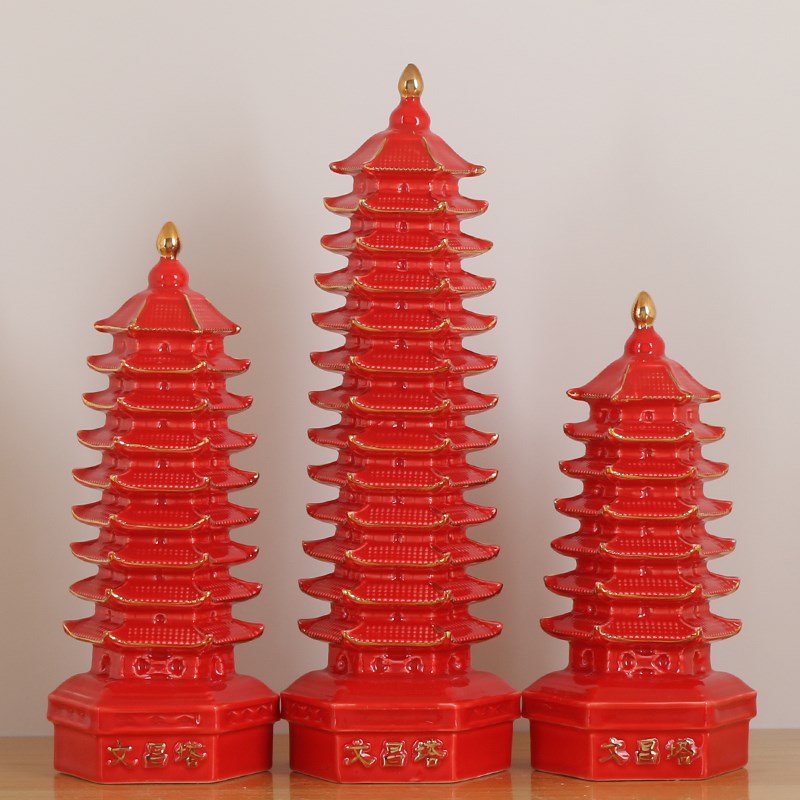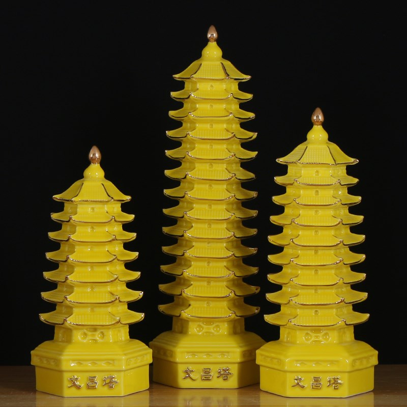 陶瓷文昌塔桌面摆件七层九层十三层黄色红色绿色黑色男.女孩办公