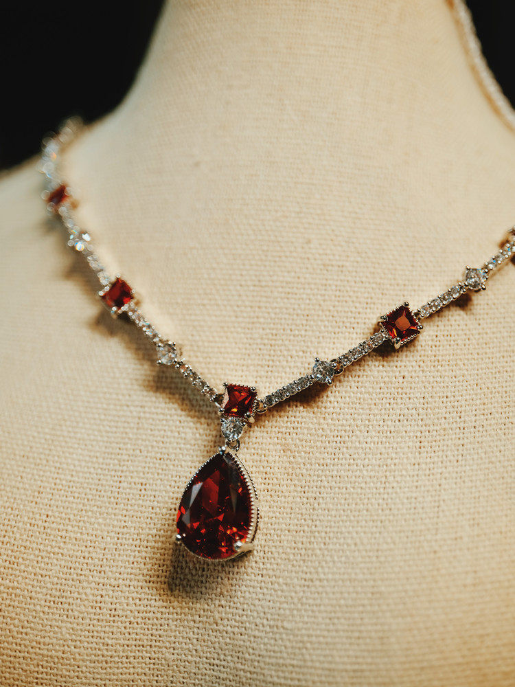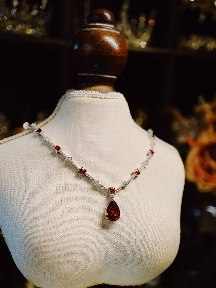 红色高级感简约法式镀金舞台晚宴项链新娘晚礼服主婚纱配饰轻奢