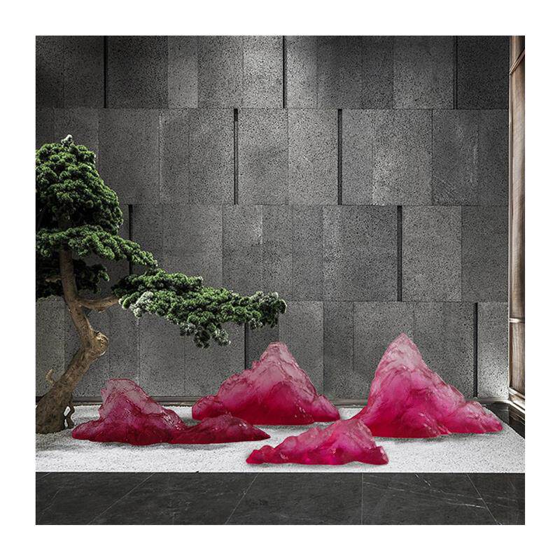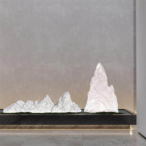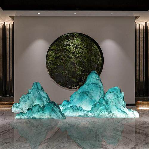 现代高档透明树脂绿色假山摆件工艺品软装饰酒店庭院客厅造景雕塑
