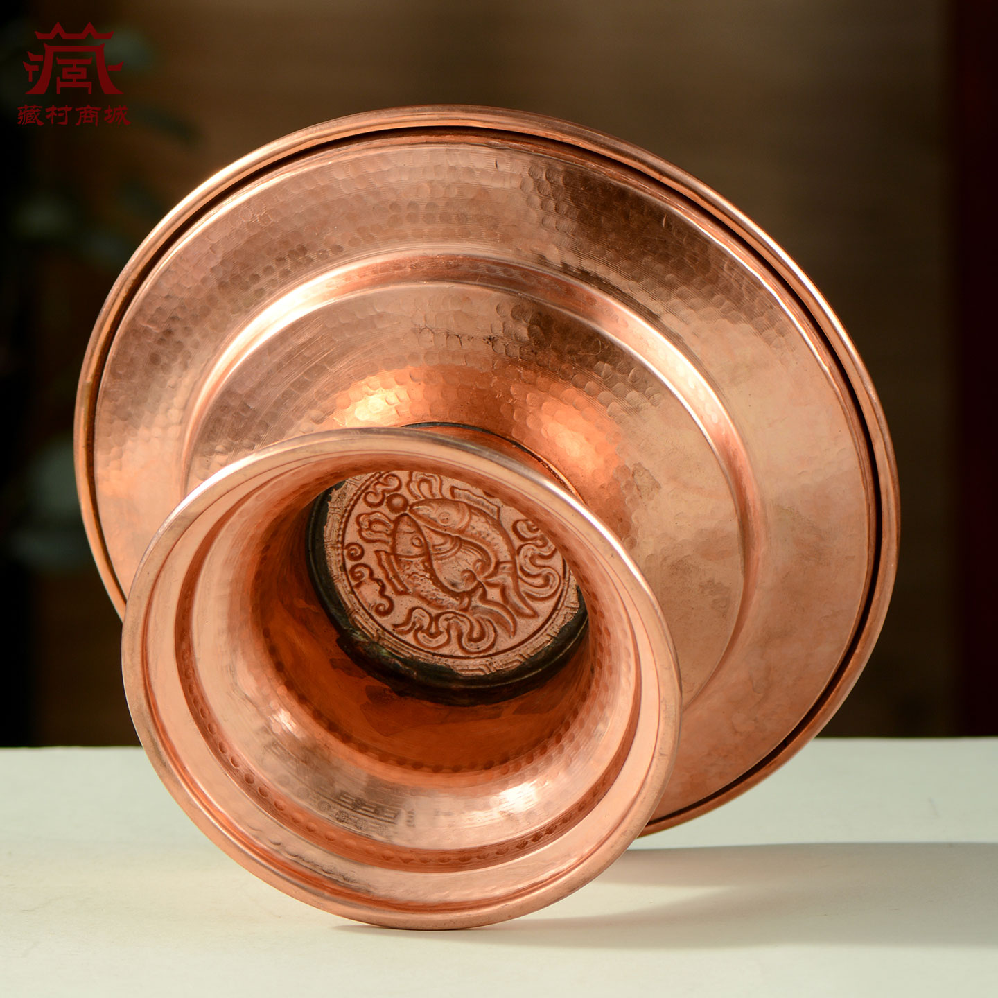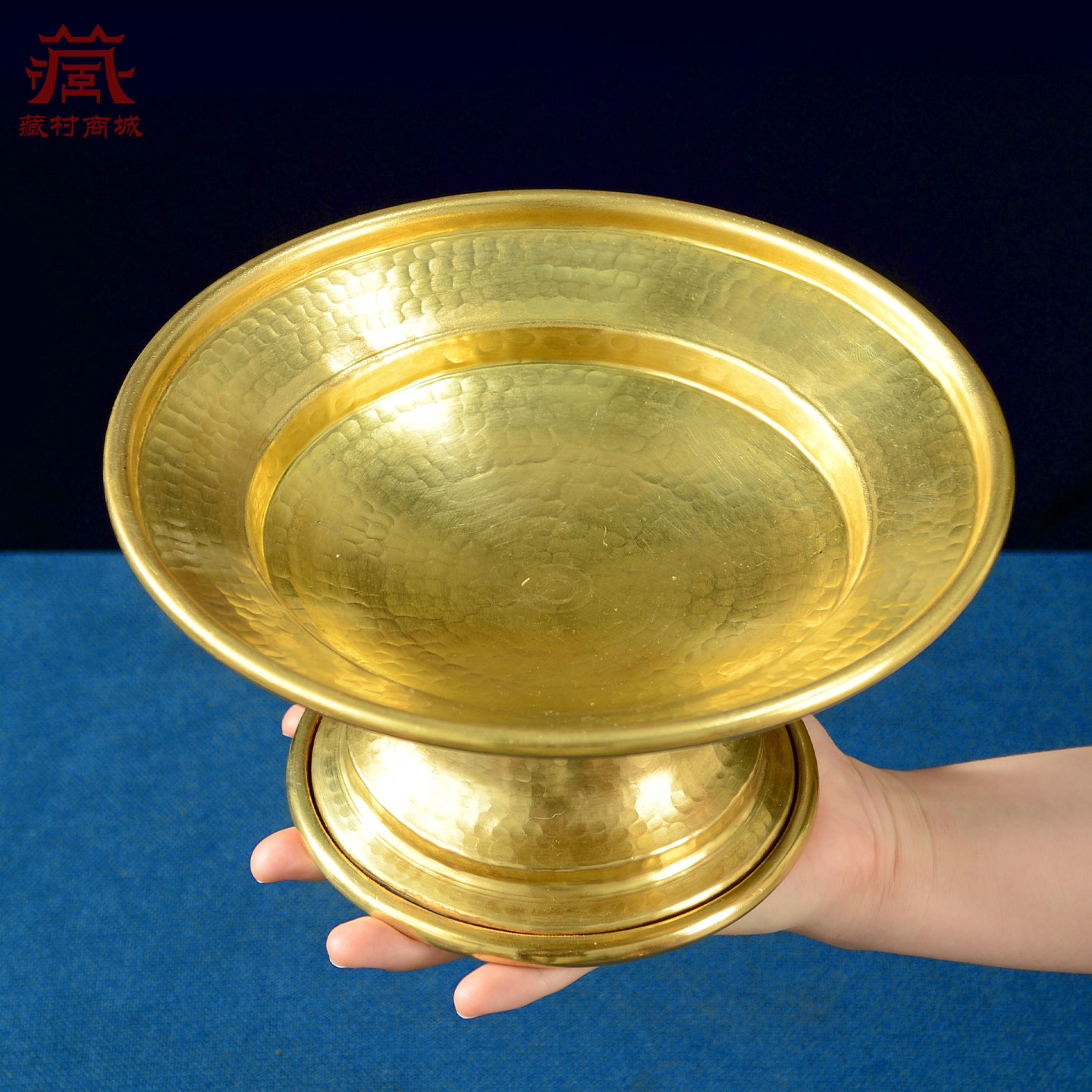 藏村铜供果盘财神贡品上供水果盘茶几高脚托盘桌面装饰摆件