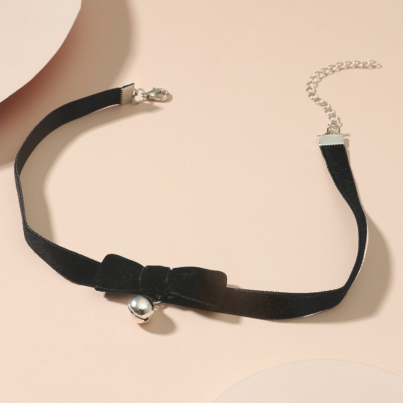 可爱软妹小铃铛蝴蝶结项圈复古黑色丝绒短款锁骨链choker项链女
