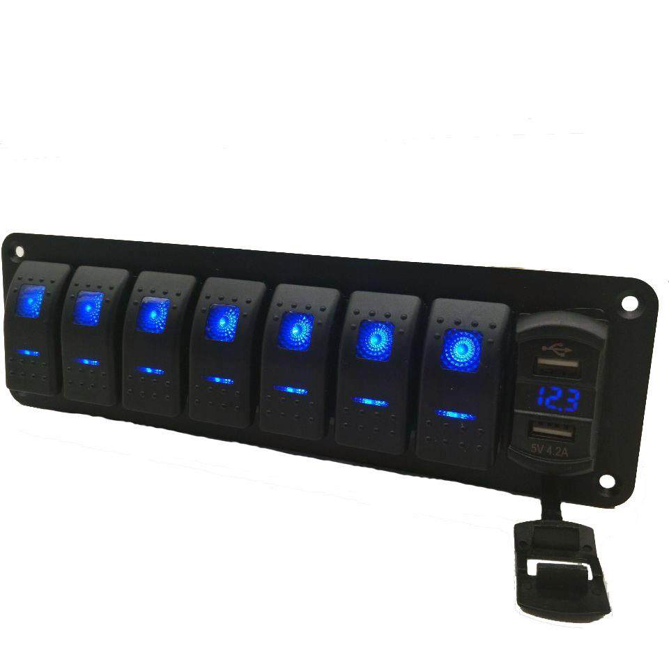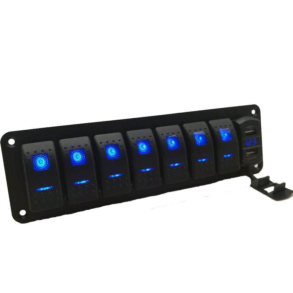 改装车船配件单排8位开关组合开关式车充带电压表数显多功能面板