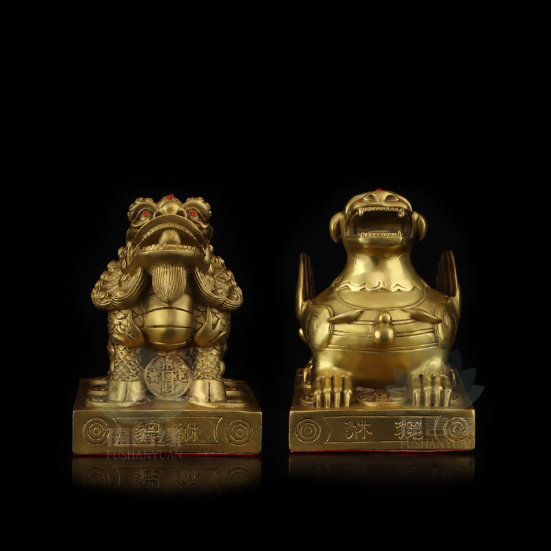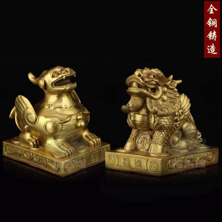 福善缘纯铜貔貅摆件一对公母貔貅黄铜铸造皮丘家居客厅店铺装饰品