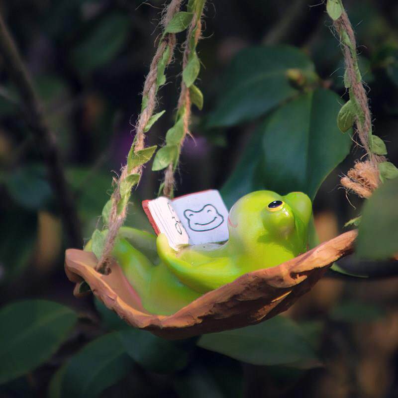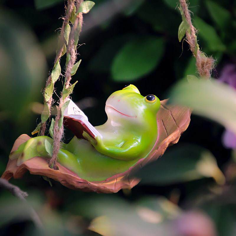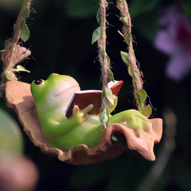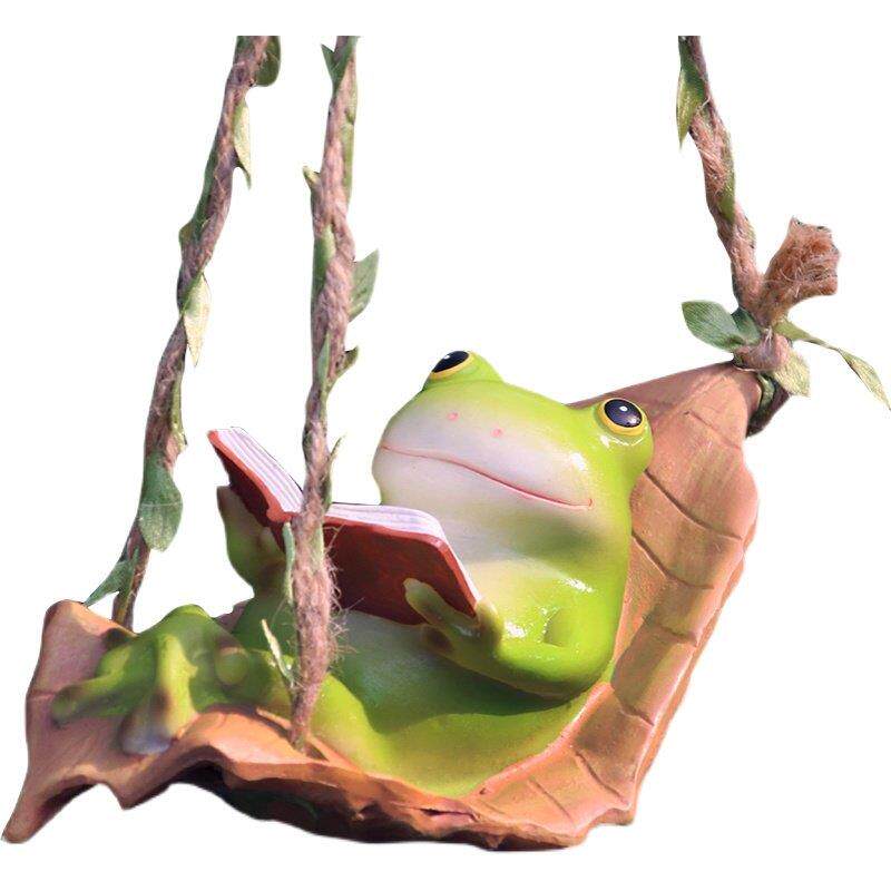 卡通小青蛙摆件阳台庭院幼儿园装饰品可爱动物看书秋千树上吊件