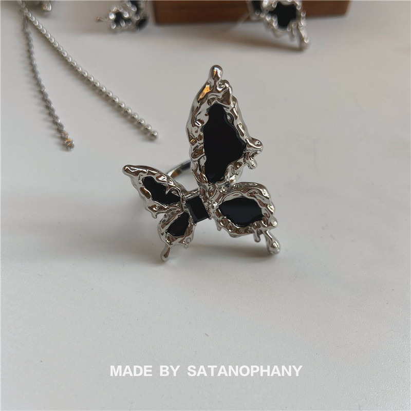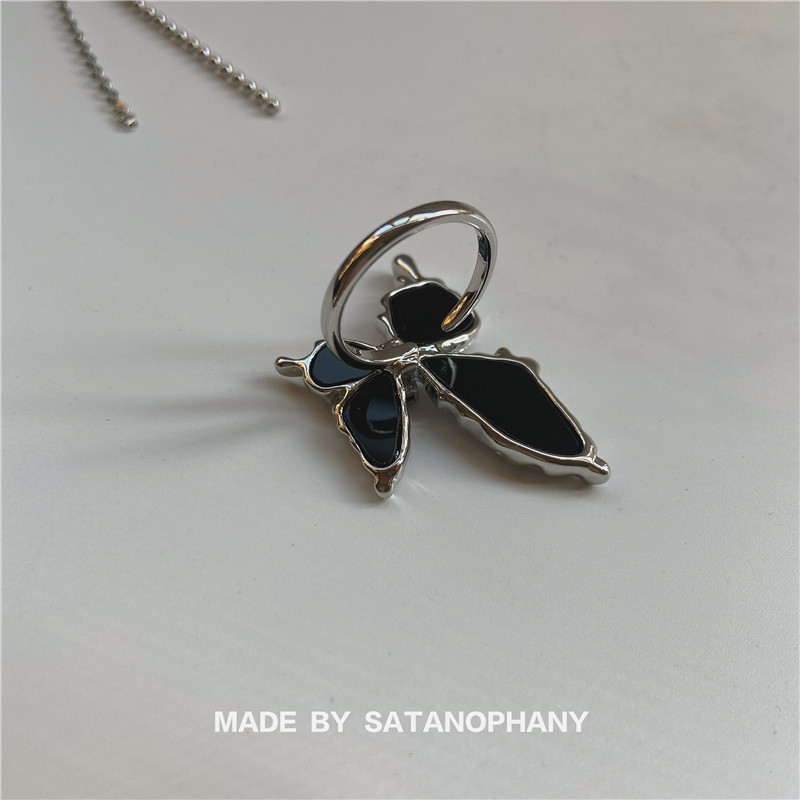 Satanophany小众设计黑色蝴蝶戒指暗黑风甜酷辣妹夸张指环开口戒