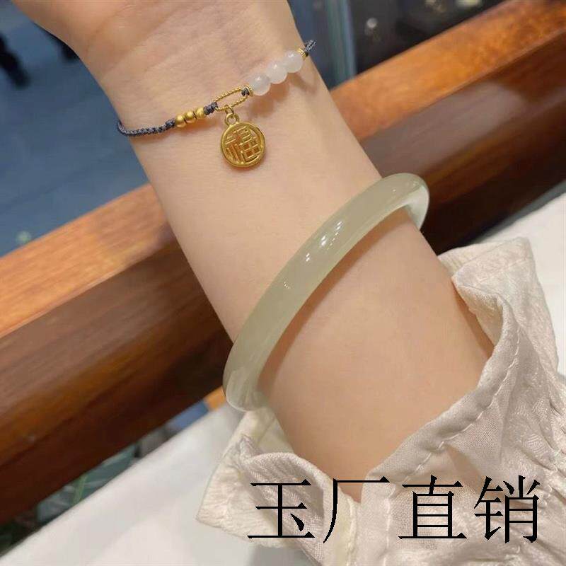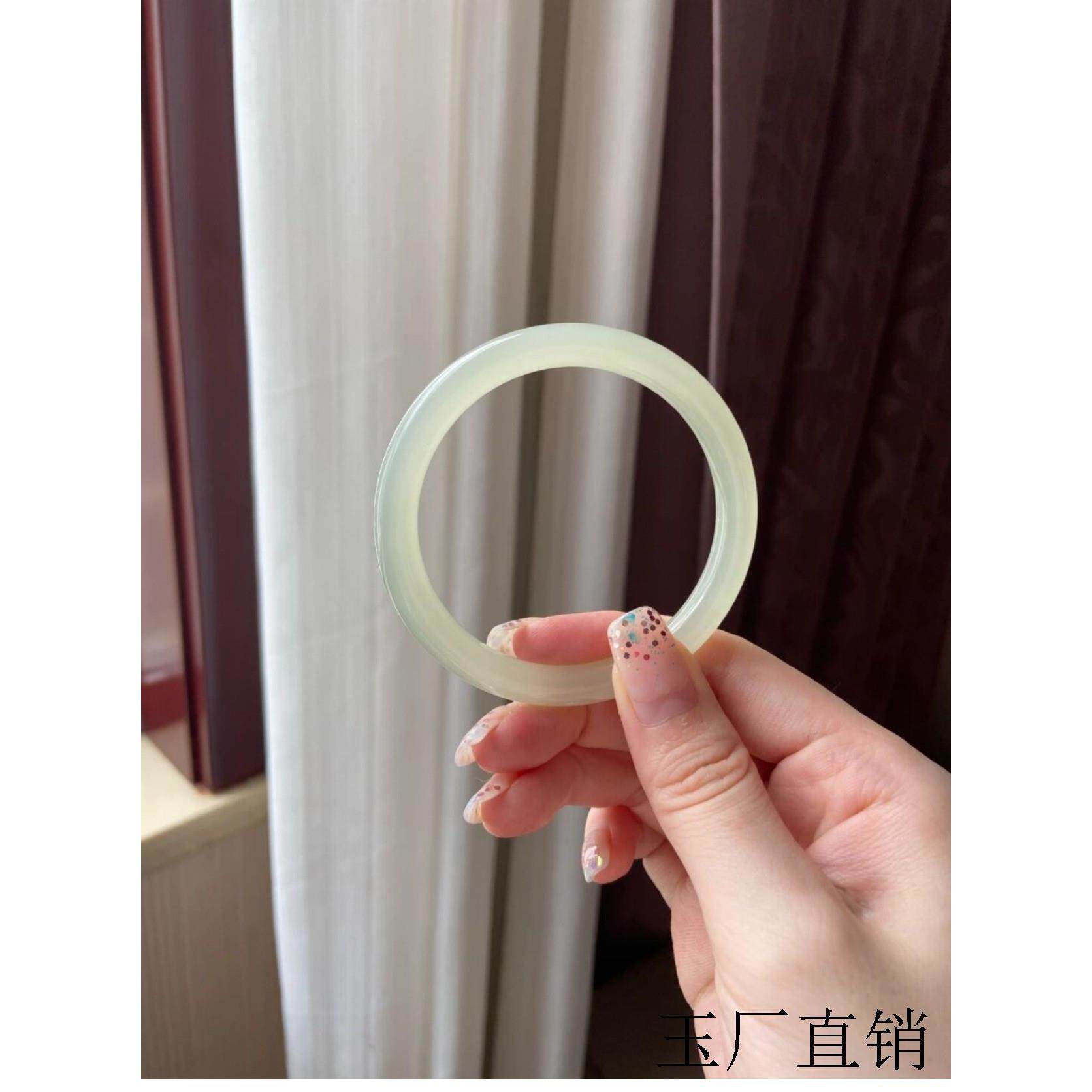 高冰和田玉青白玉复古羊脂白玉镯晴水浅绿色细款圆条叮当镯女饰品