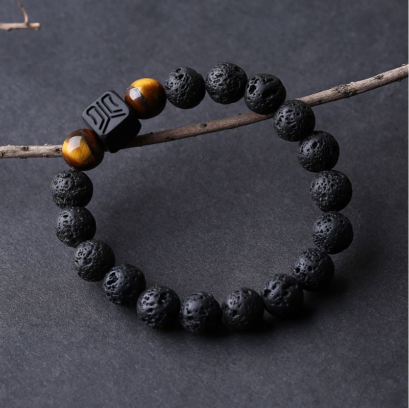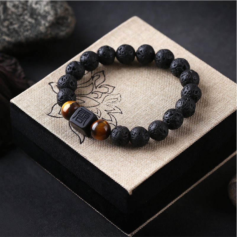 「火熔」天然檀木火山石石虎睛虎眼石手链手串饰品男个性刻字定制