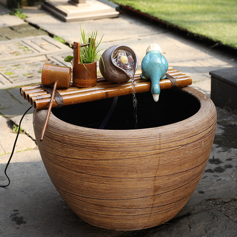 小型陶瓷鱼缸自制出水口diy装饰循环吐水流水器摆件水族箱微景观
