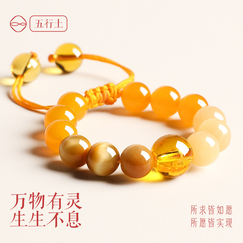 普陀山五行补土手串女款补缺喜用天然水晶多宝黄水晶手链宝宝儿童