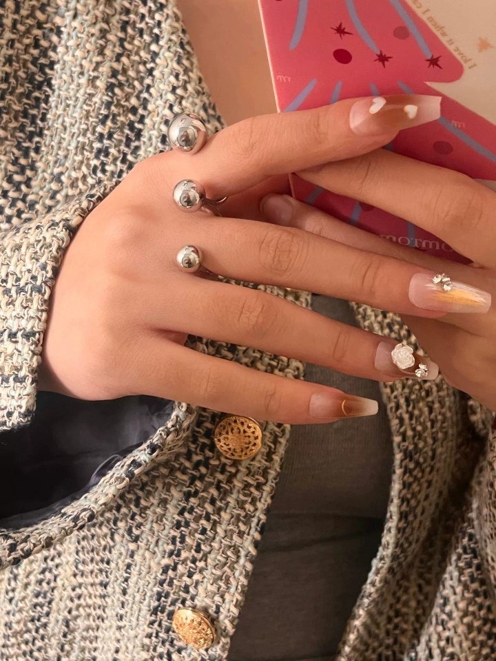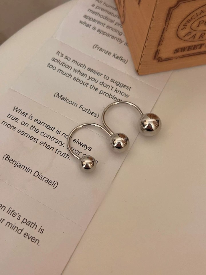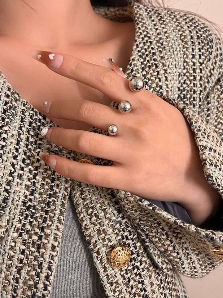 韩版小众设计金属圆珠球戒指 ins简约冷淡风双指叠戴开口指环戒子