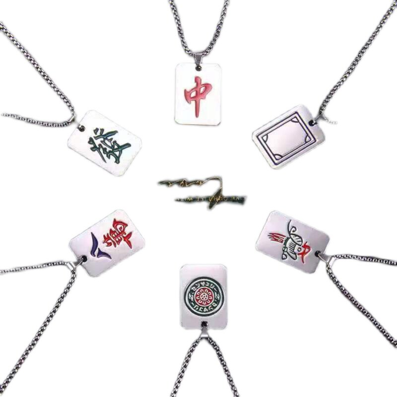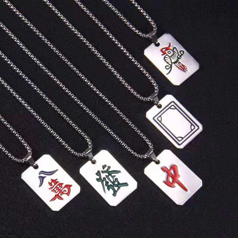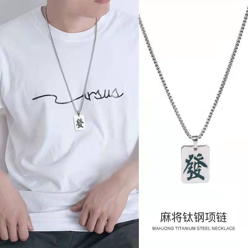 国潮嘻哈中国风麻将红中发钛钢ins项链男女街头潮人百搭蹦迪幸运