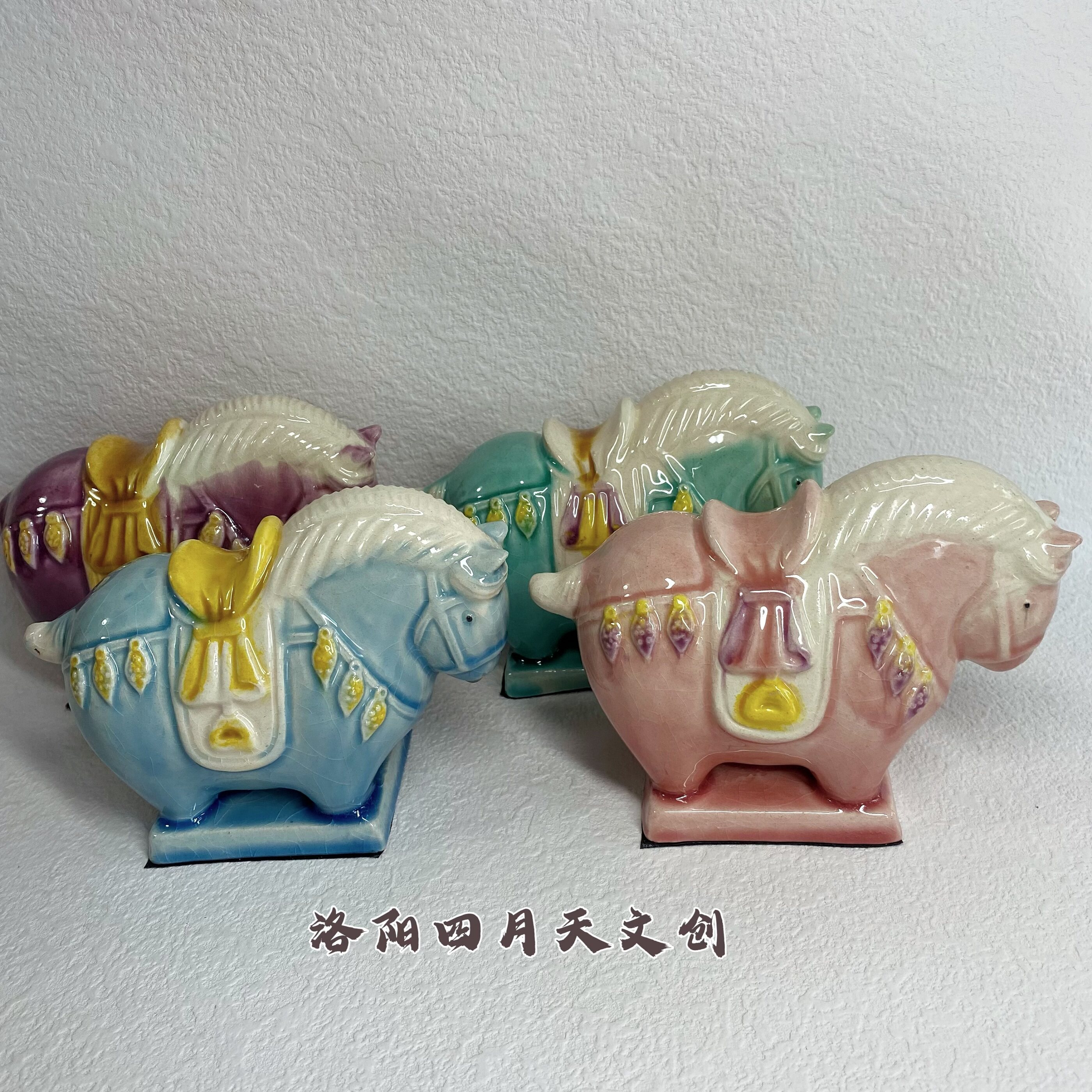 洛阳小胖马小粉马马卡龙粉色紫色绿色小马唐三彩陶瓷旅游伴手礼