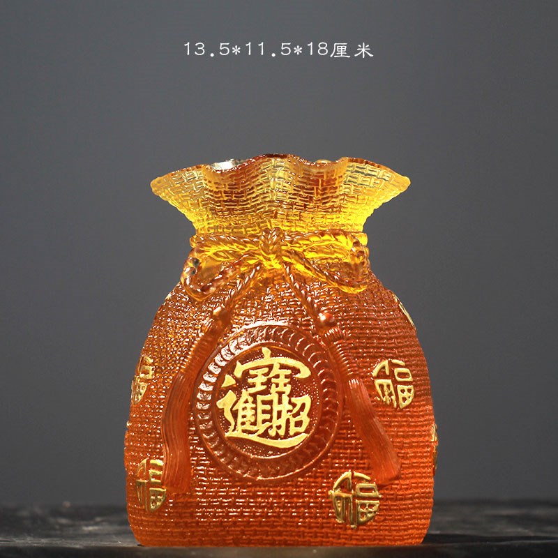 琉璃福袋聚d宝盆笔筒风水招财摆件居家客厅办公摆放中式装饰送礼