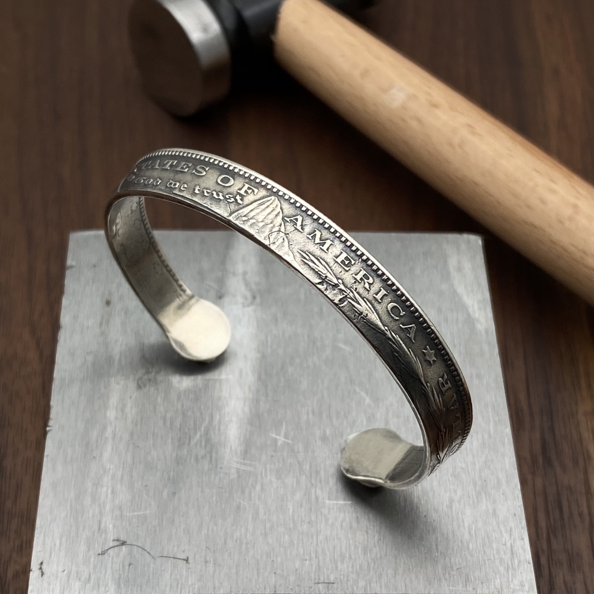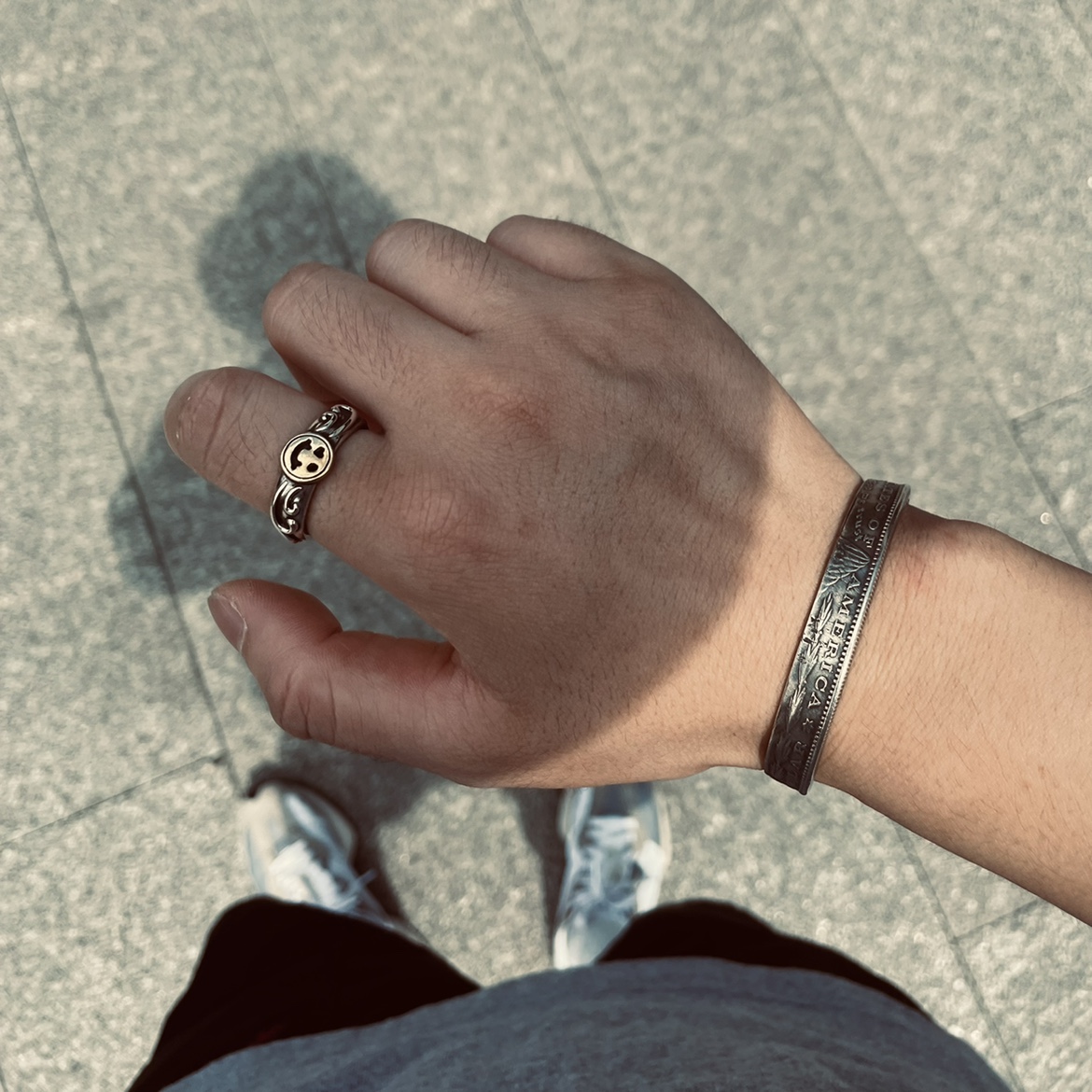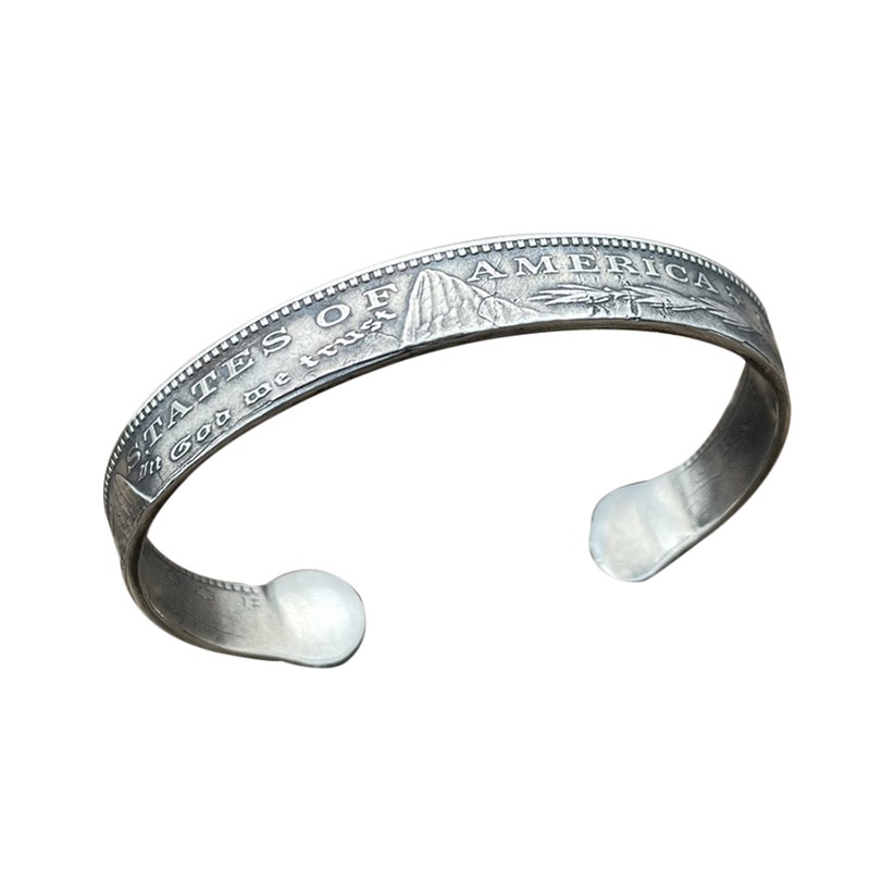 思涵银工坊摩根银币菊花钉松石做旧925银开口手镯阿美咔叽男女款