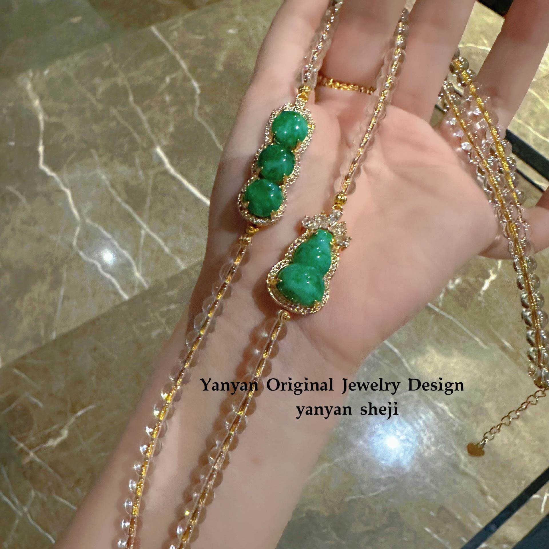 2026复古干青微镶锆石玉髓无事牌福豆四季豆葫芦白色透明珠项链气