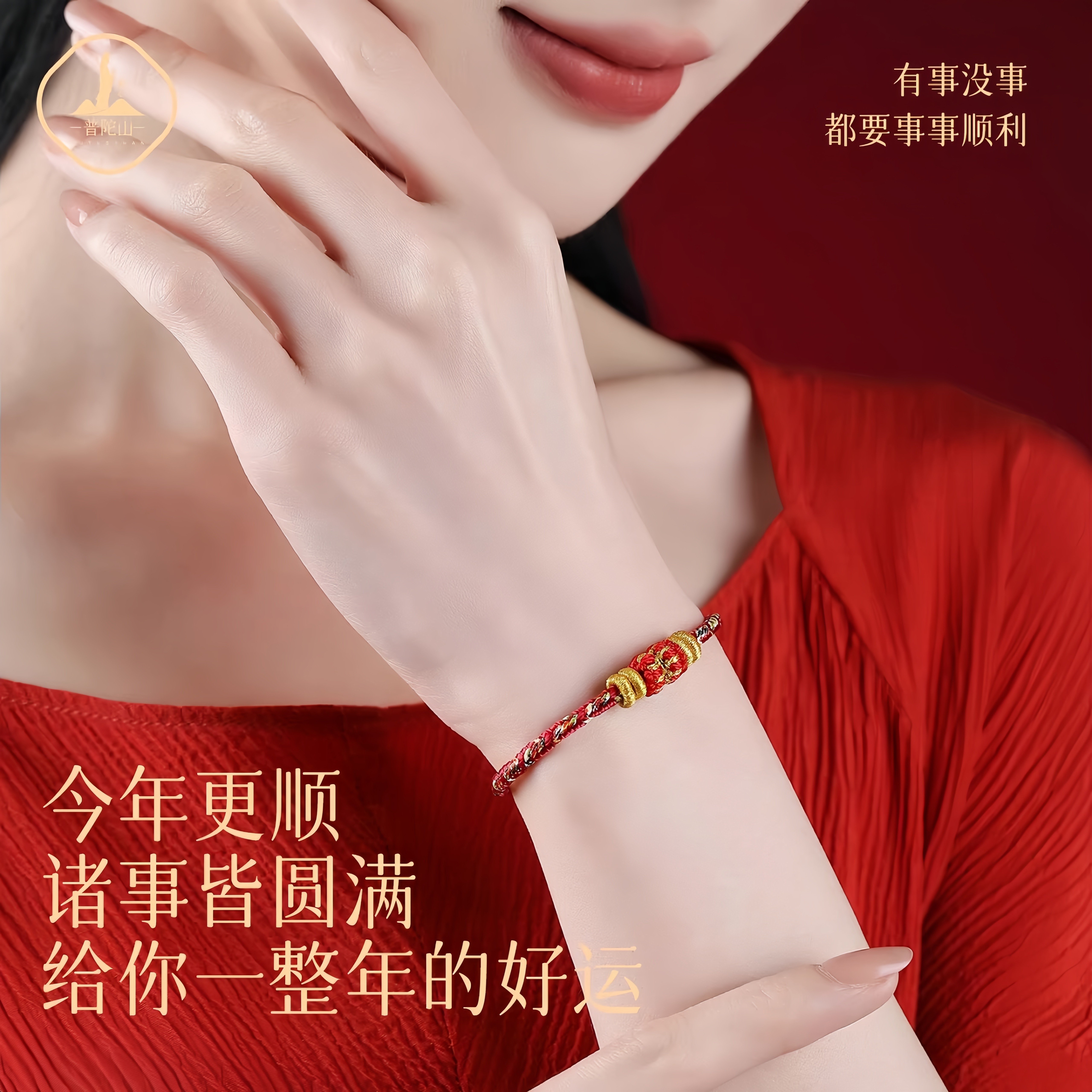 普陀山2026本命年小红绳马年太岁红绳手链手工编织绳红色手绳礼物