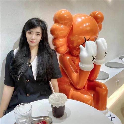 克莱因蓝网红店落地大摆件坐姿美发店公仔玻璃钢雕塑客厅装饰