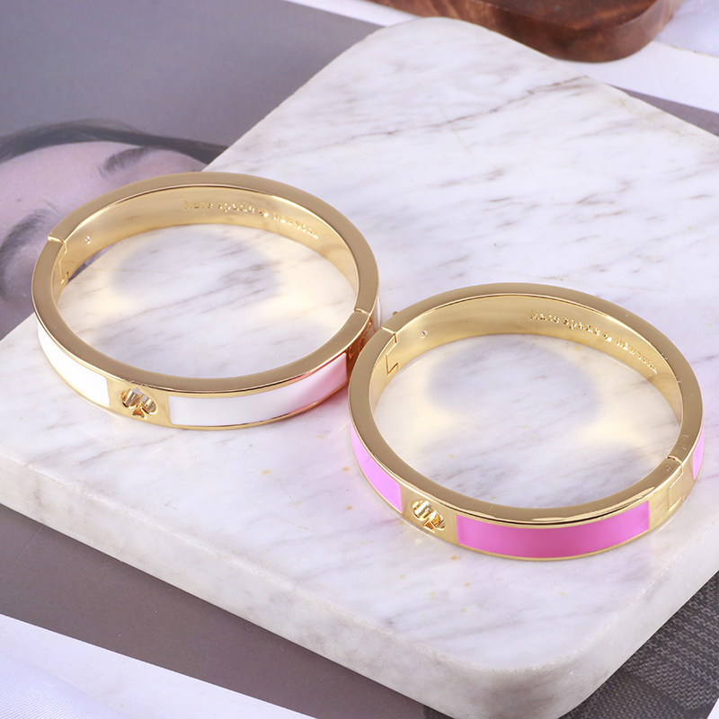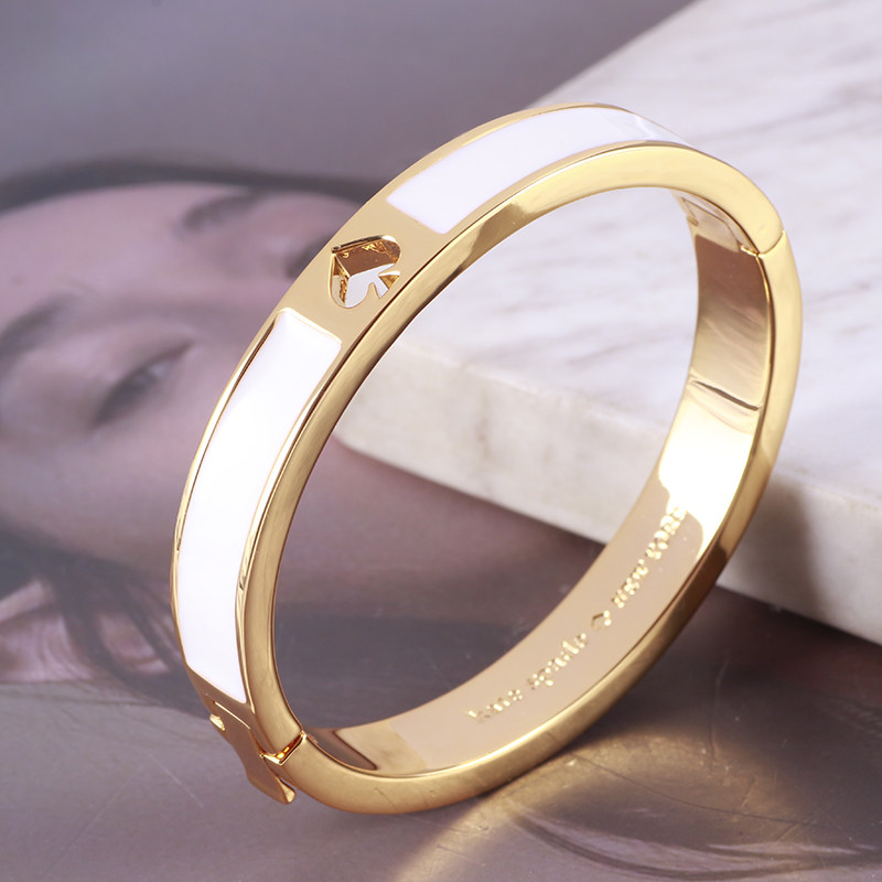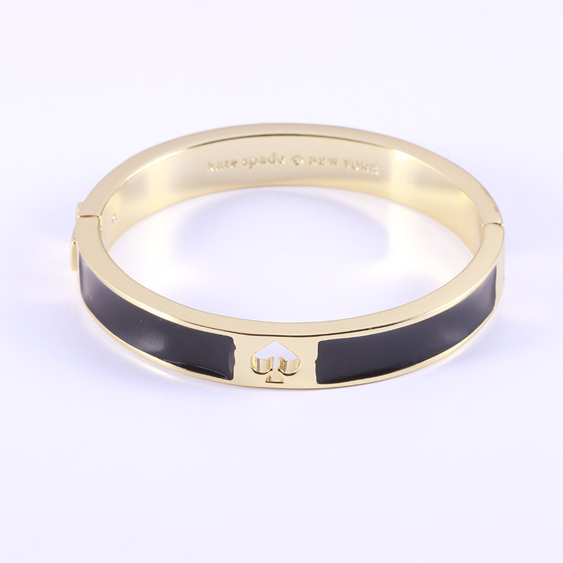 欧美风时尚黑色珐琅釉彩个性简约镀金镂空桃心形质感可打开手镯女