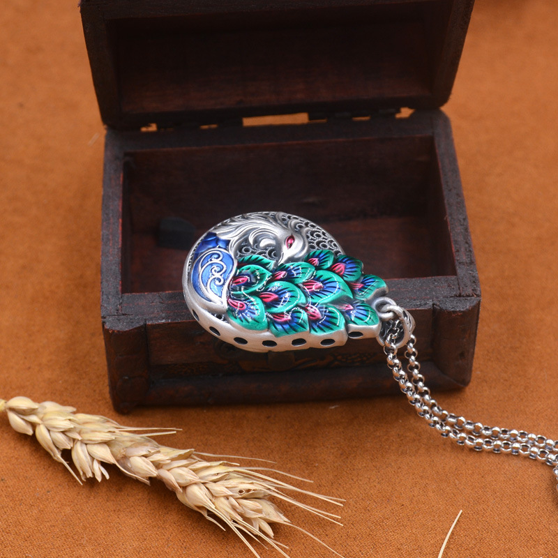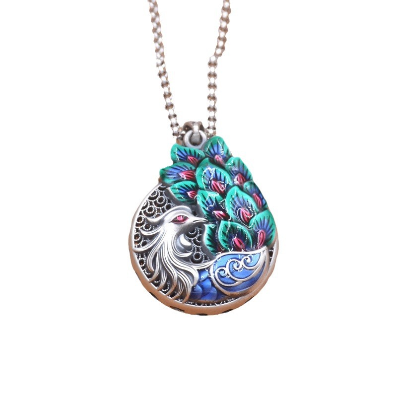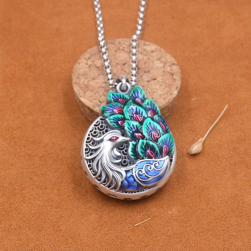 种花家无事牌彩色凤凰s银复古女银吊坠毛衣链挂件长款文艺项链