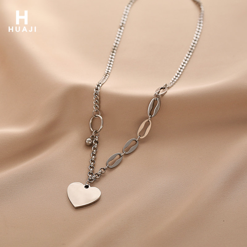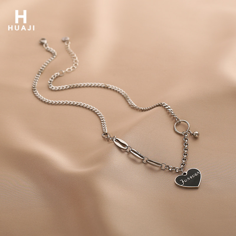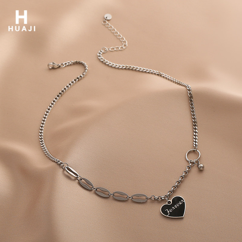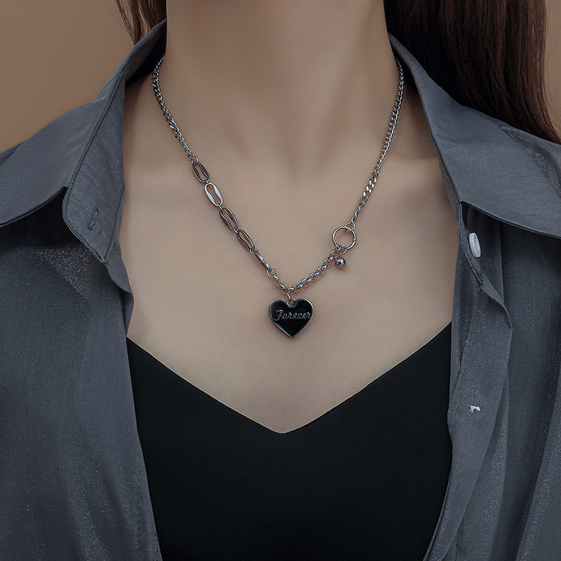 花迹黑色爱心项链女嘻哈拼接锁骨链冷淡风小众设计字母颈链