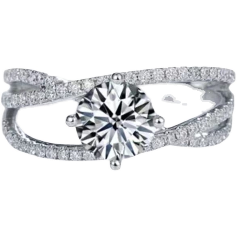 PT950铂金莫桑石一克拉四爪镶嵌戒指纯银三生三世结婚钻戒精致女