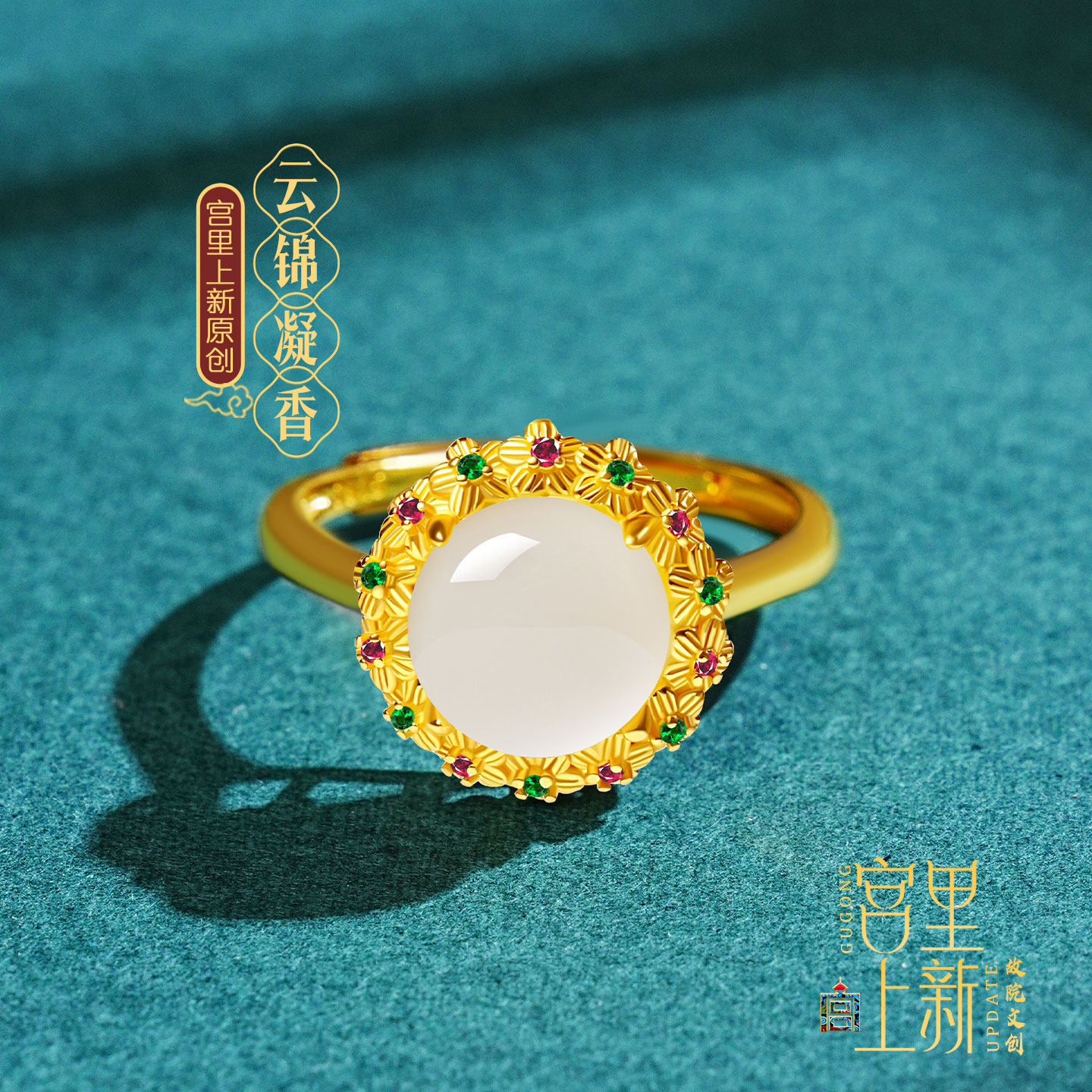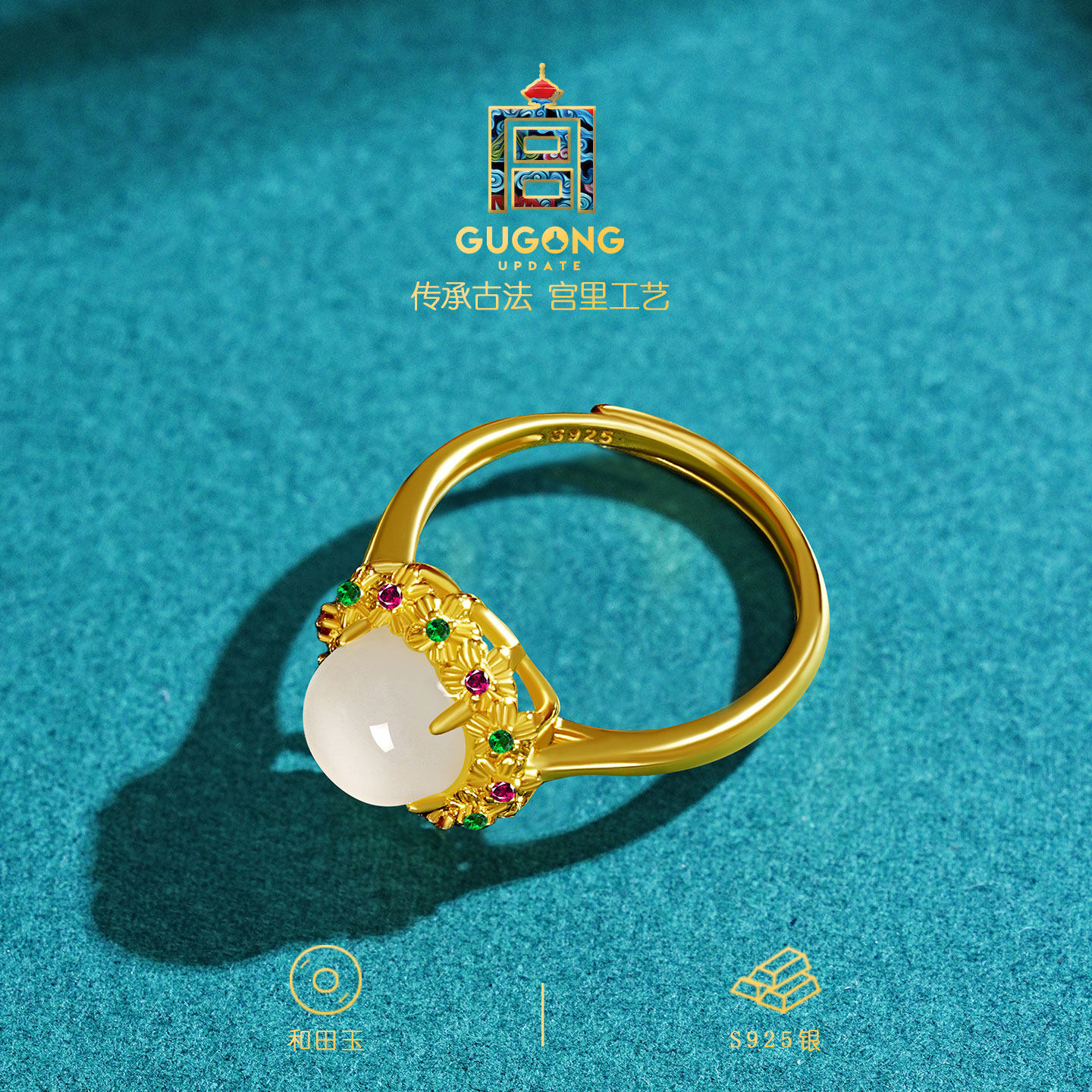 宫里上新和田玉戒指女正品纯银天然玉石戒指新中式生日礼物送妈妈