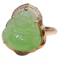 天然和田碧玉佛公笑佛戒指活口扣指环老坑料菠菜绿阳绿本命年手饰