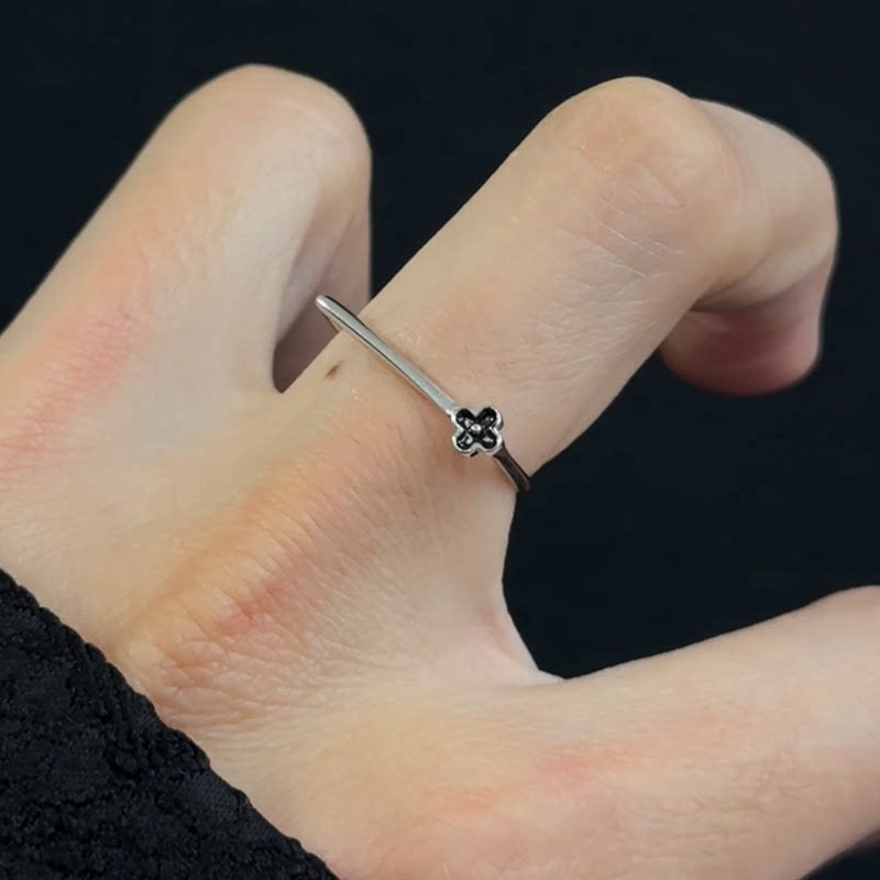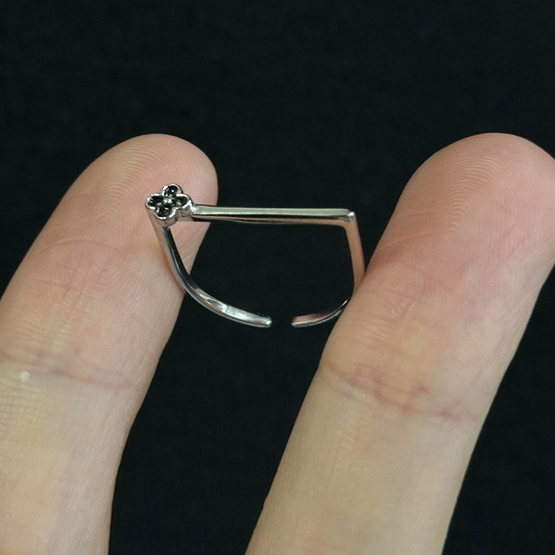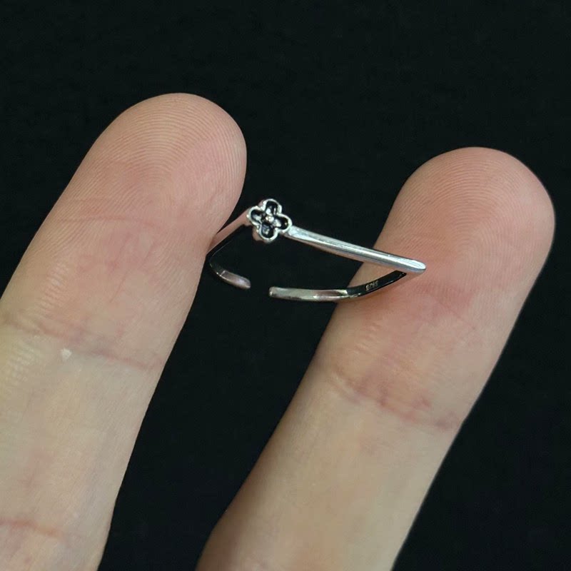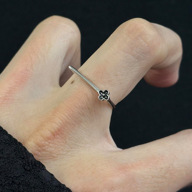 复古黑色花朵戒指女2026新款小众设计冷淡风食指戒轻奢高级感指环