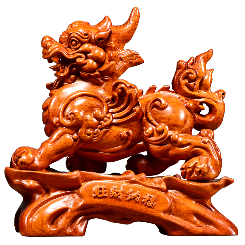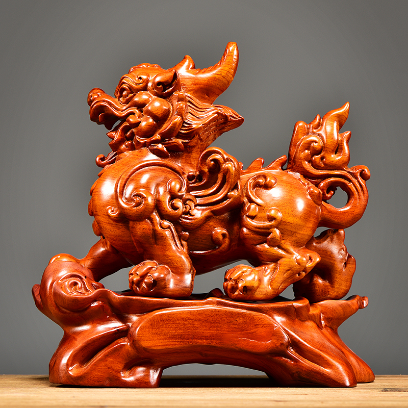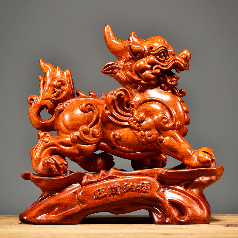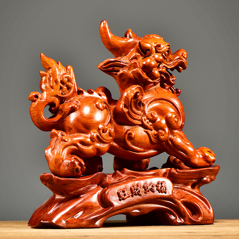 花梨木雕貔貅摆件家居客厅酒柜办公室装饰实木皮丘工艺品开业礼品