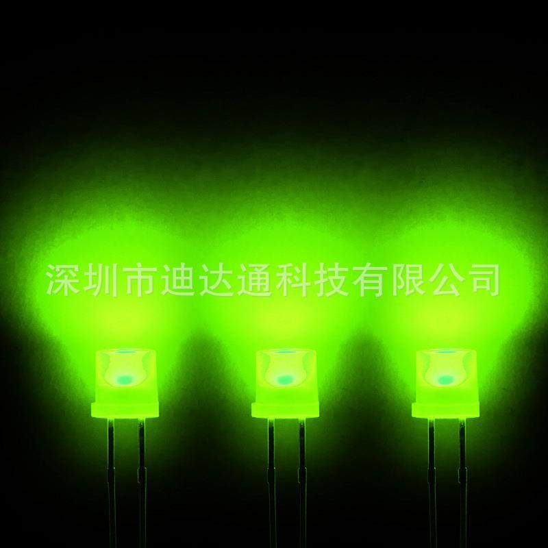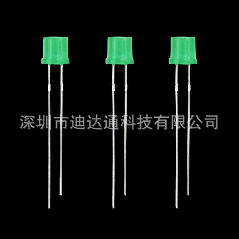 F5平头绿发绿长脚5mm平头绿发普绿普亮绿光灯珠发光二极管
