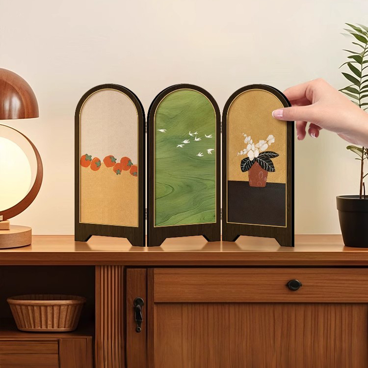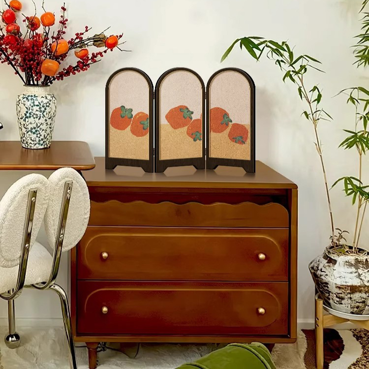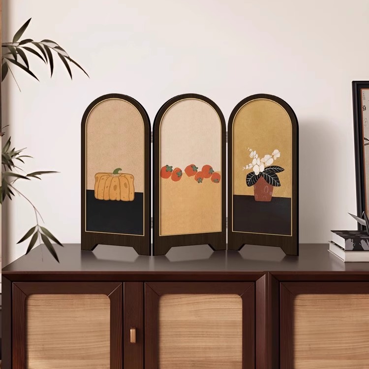 柿柿如意中古风客厅桌面摆件屏风装饰品复古客厅电视柜玄关茶桌台