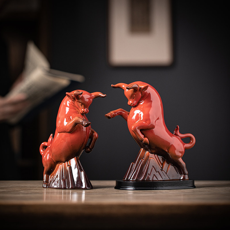 创意牛气冲天陶瓷红色牛摆件招财客厅办公室桌面装饰吉祥物礼品