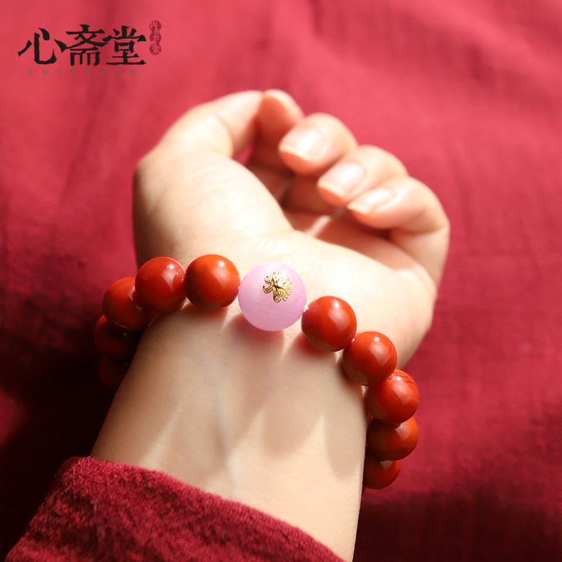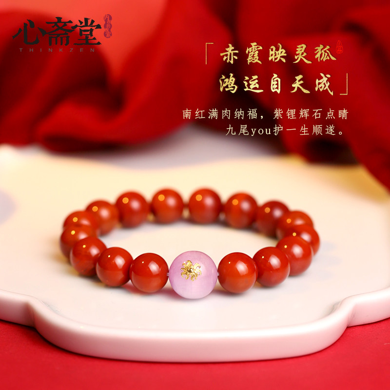 心斋堂【赤霞灵佑】收藏凉山南红玛瑙手串满色满肉柿子红九尾手链