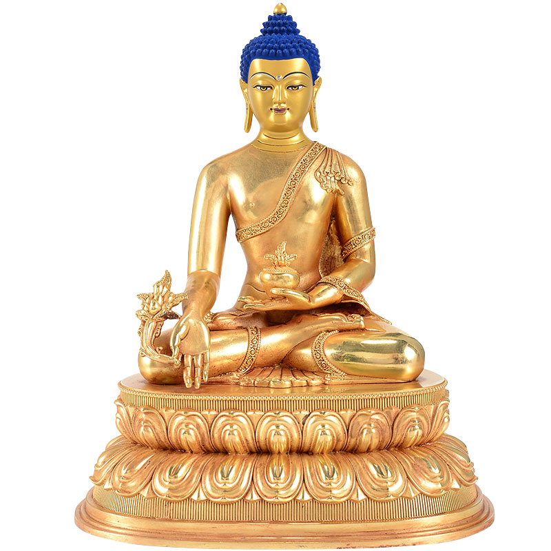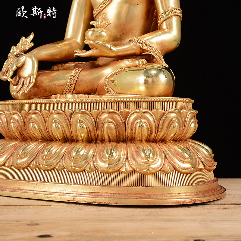 欧斯特药师佛铜像 西藏客厅家用全鎏金三宝佛摆件双层底座10寸