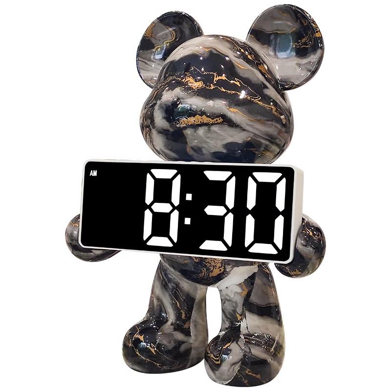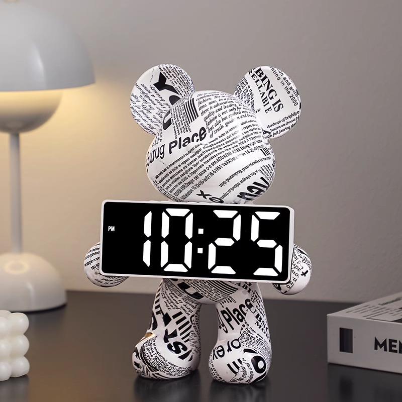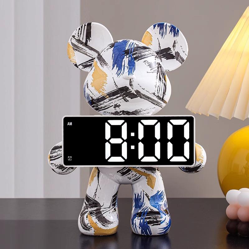 创意暴力熊时钟摆件客厅桌面轻奢高档装饰数字钟表摆台式电子闹钟