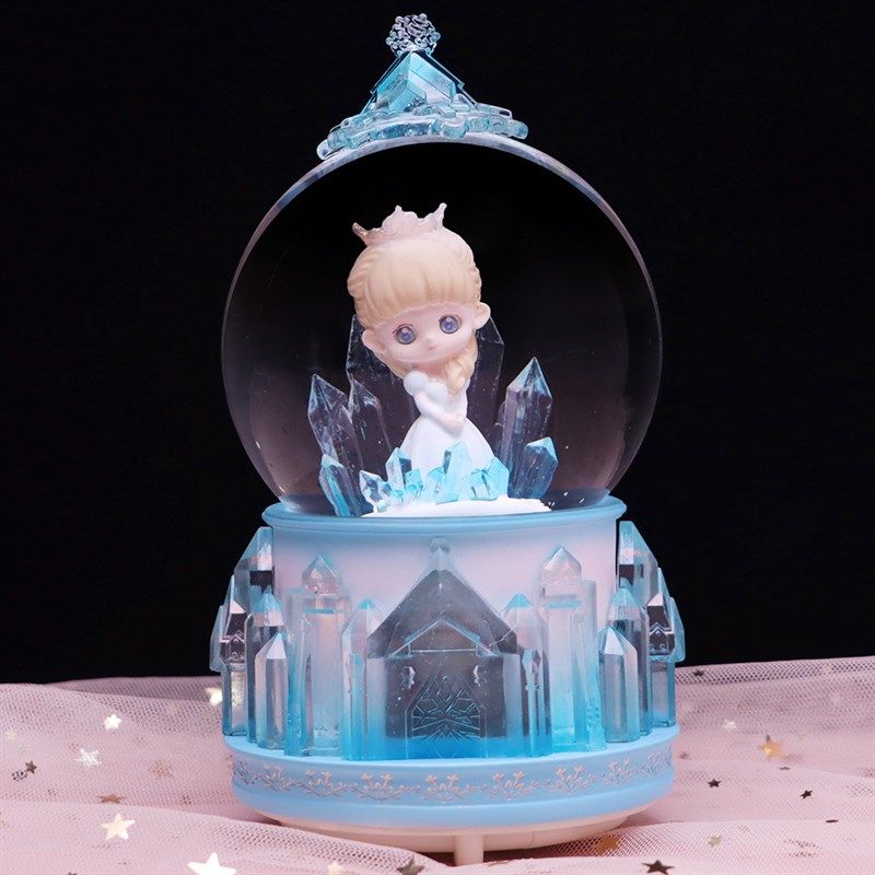公主水晶球音乐盒旋转发光女孩卧室摆件飘雪八音盒儿童生日礼物女