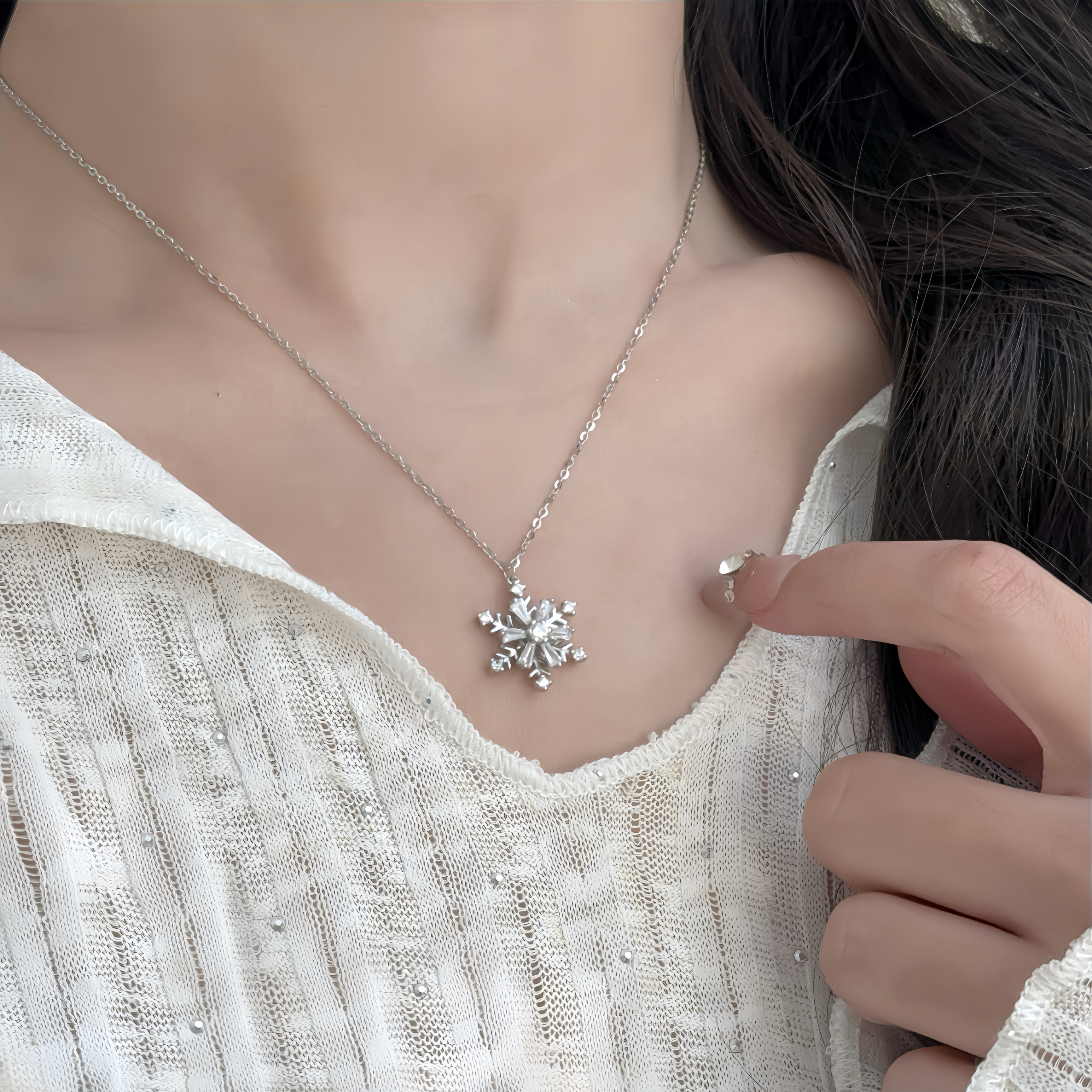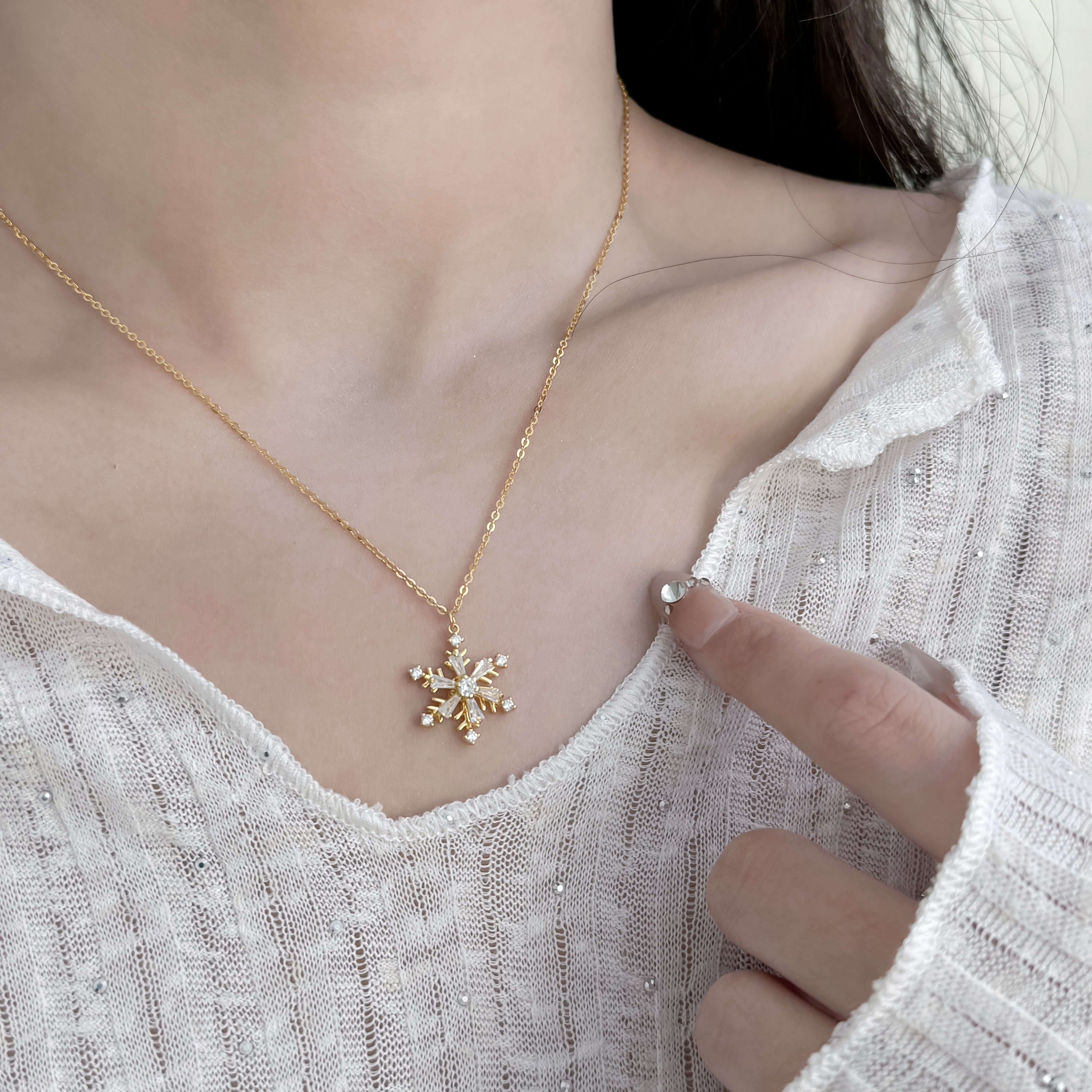 初雪925纯银旋转雪花项链女圣诞节小众设计轻奢高级感锁骨链