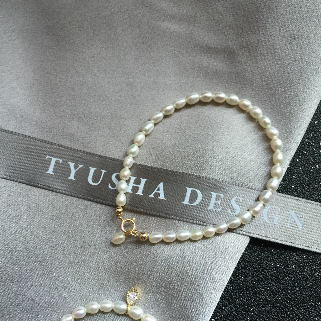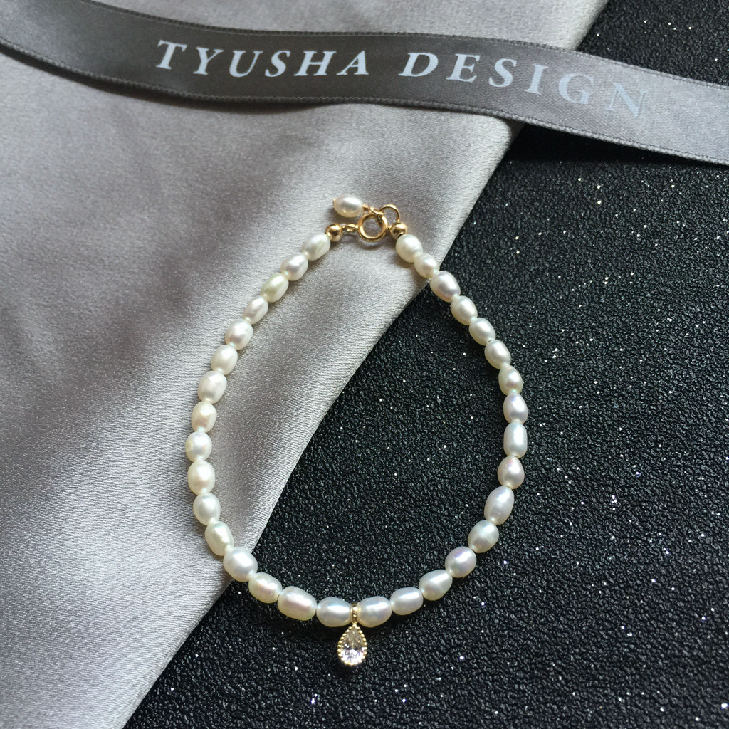 TYUSHA 设计强光小米粒天然淡水珍珠手链美国进口14K包金注金送礼