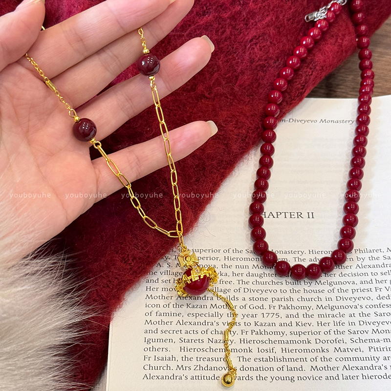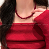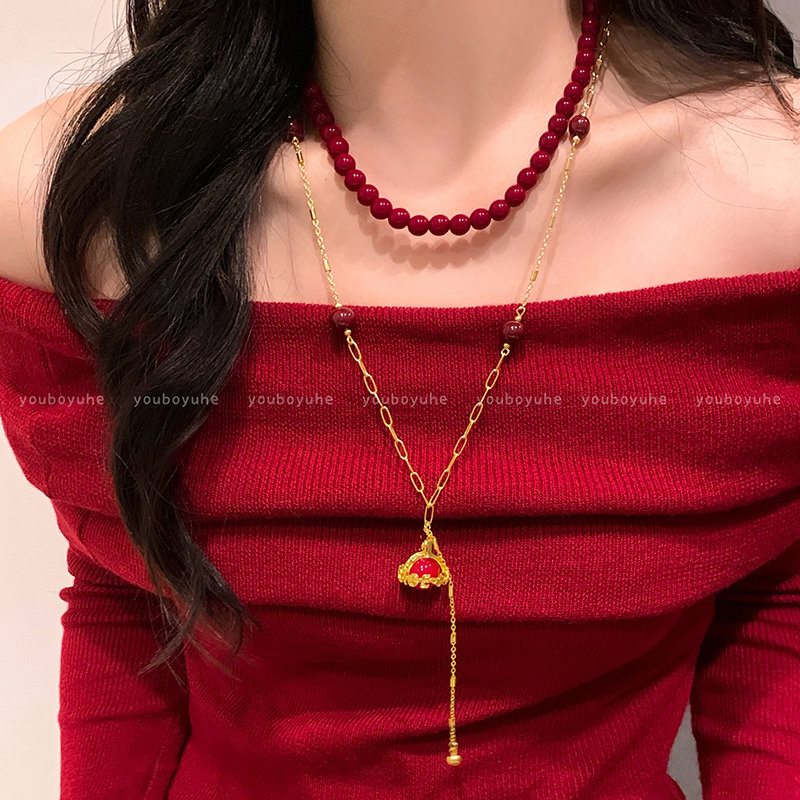 长款红色土星球吊坠流苏项链女高级感西太后卫衣毛衣链叠戴配饰品