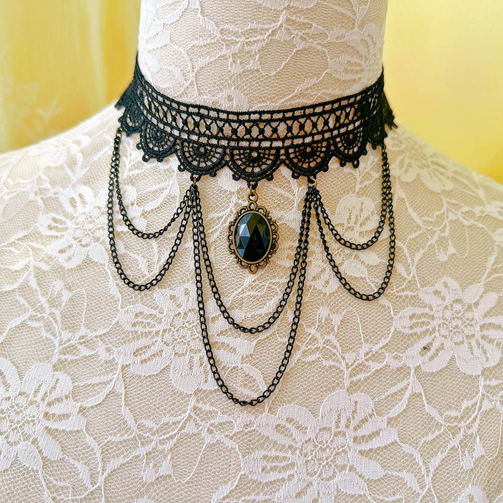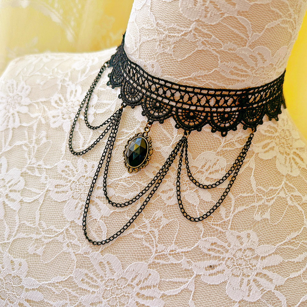 复古哥特风颈圈饰品黑色蕾丝珍珠吊坠小众项链女锁骨链LSXL040