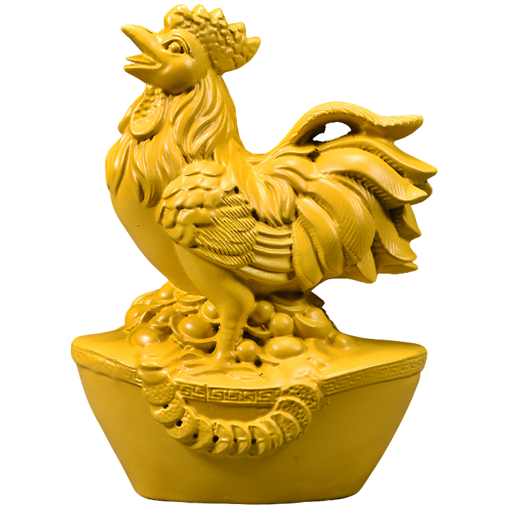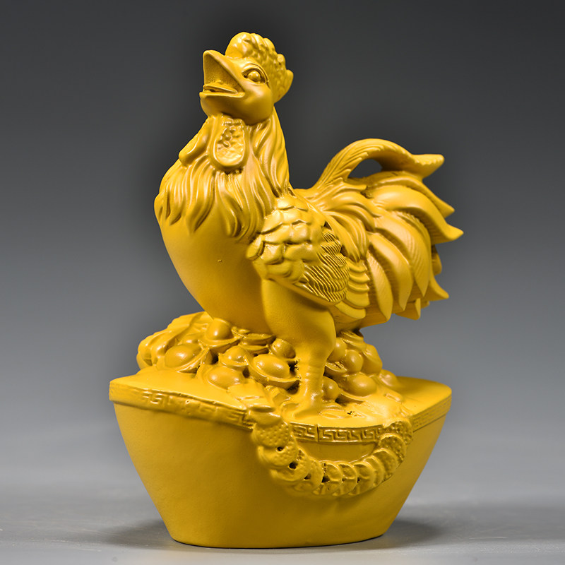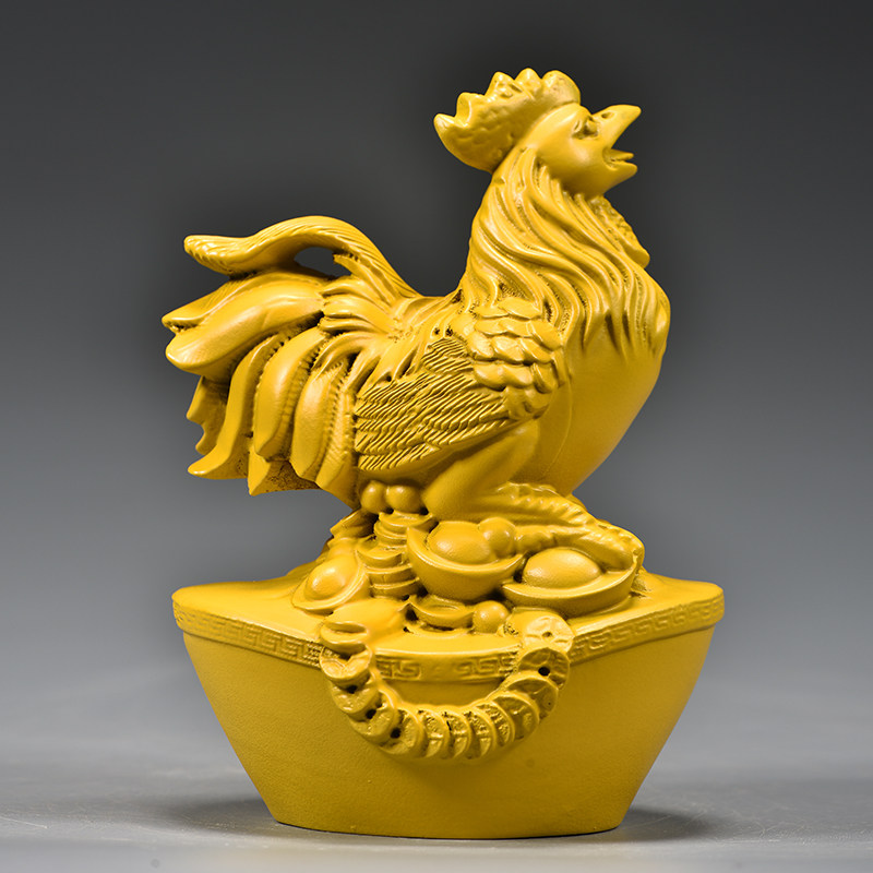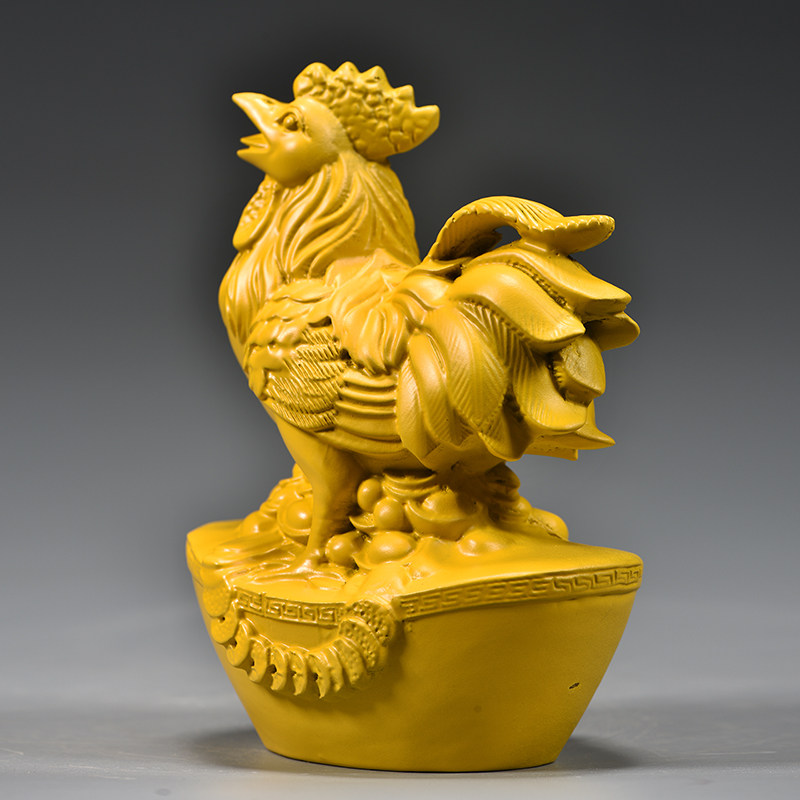 黄色实木雕刻鸡摆件木质十二生肖木头大公鸡吉祥物装饰木制工艺品