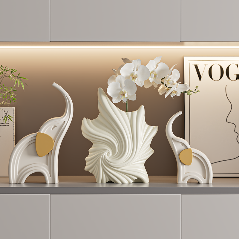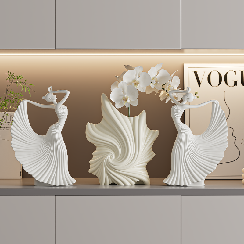 抽象异形条纹花瓶摆件小众艺术客厅插花餐桌电视柜装饰花器高级感