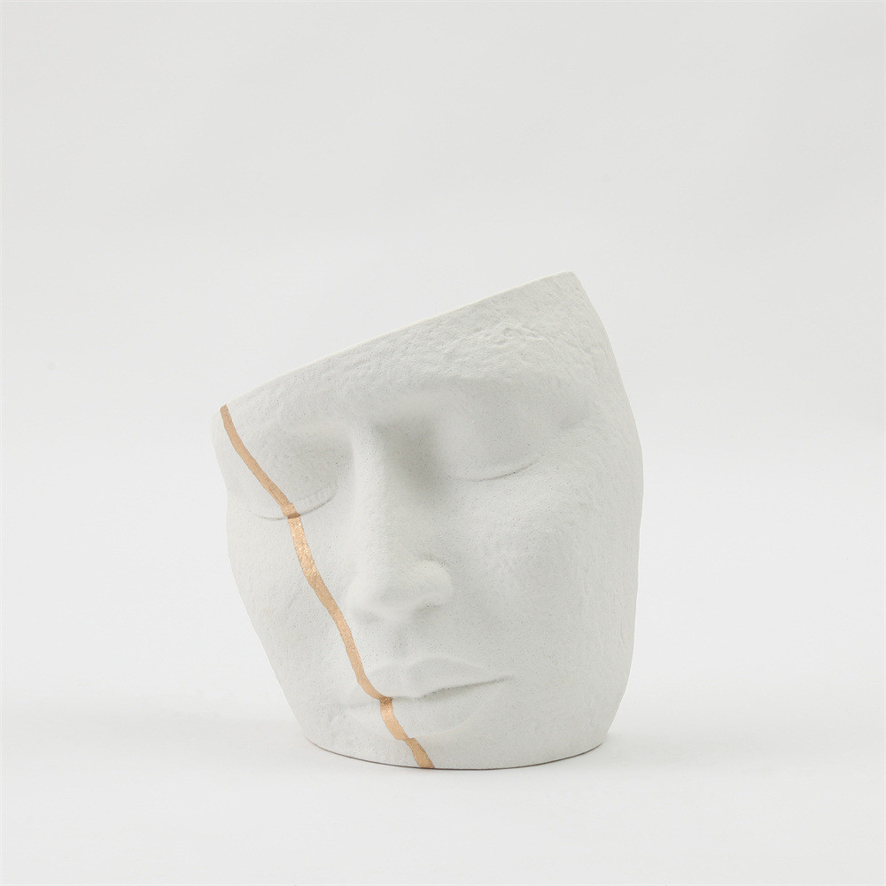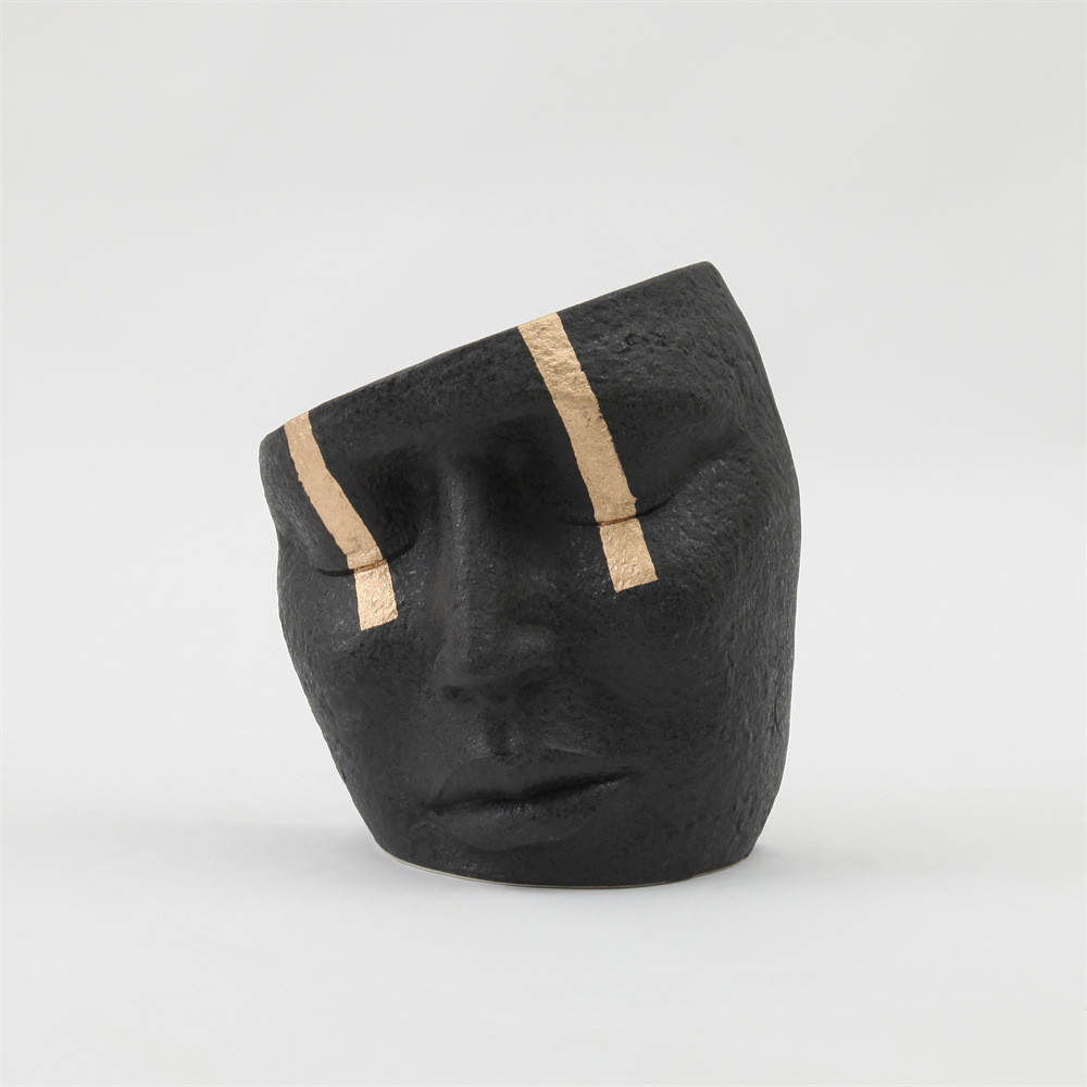 创意北欧ins风抽象描金人脸陶瓷花瓶插花餐桌客厅家居样板间摆件