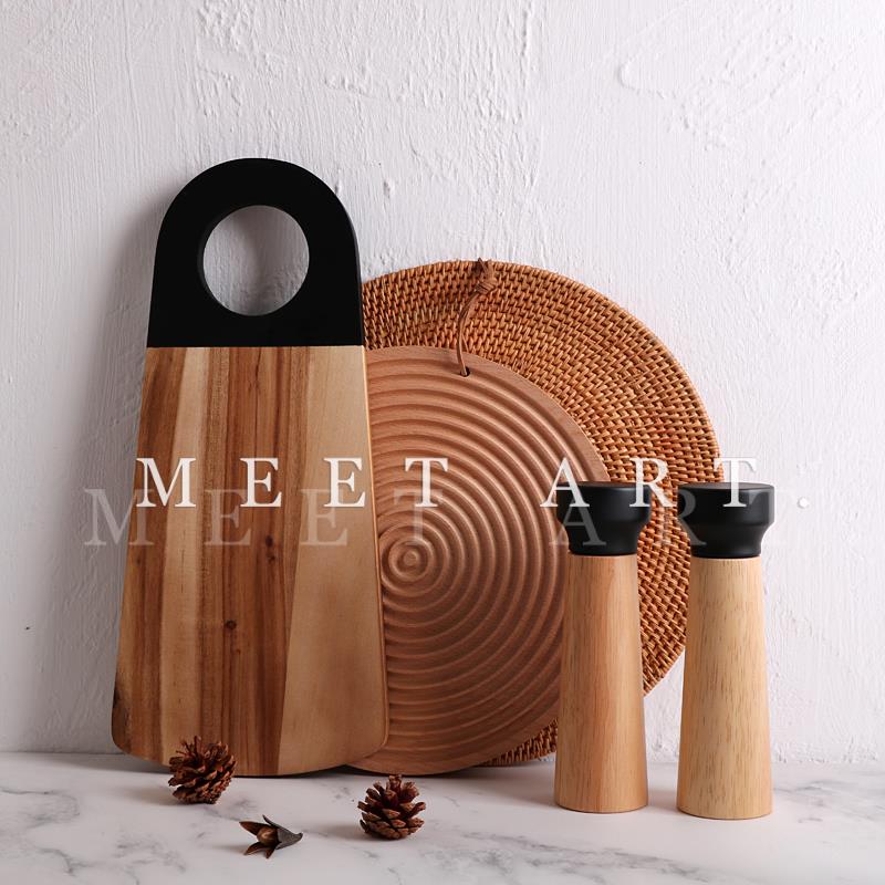 新 中式板间房台面饰品 实木砧NPT板厨餐板蛋糕托盘样软装饰品组