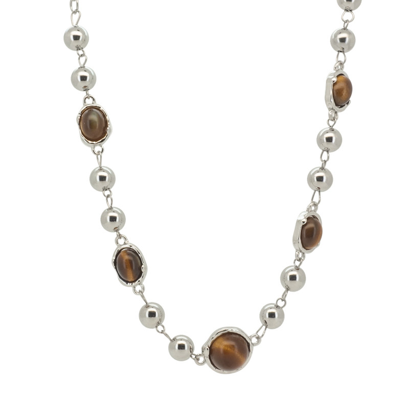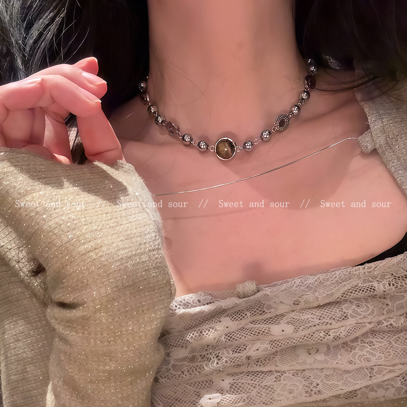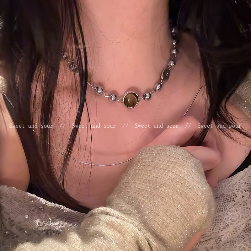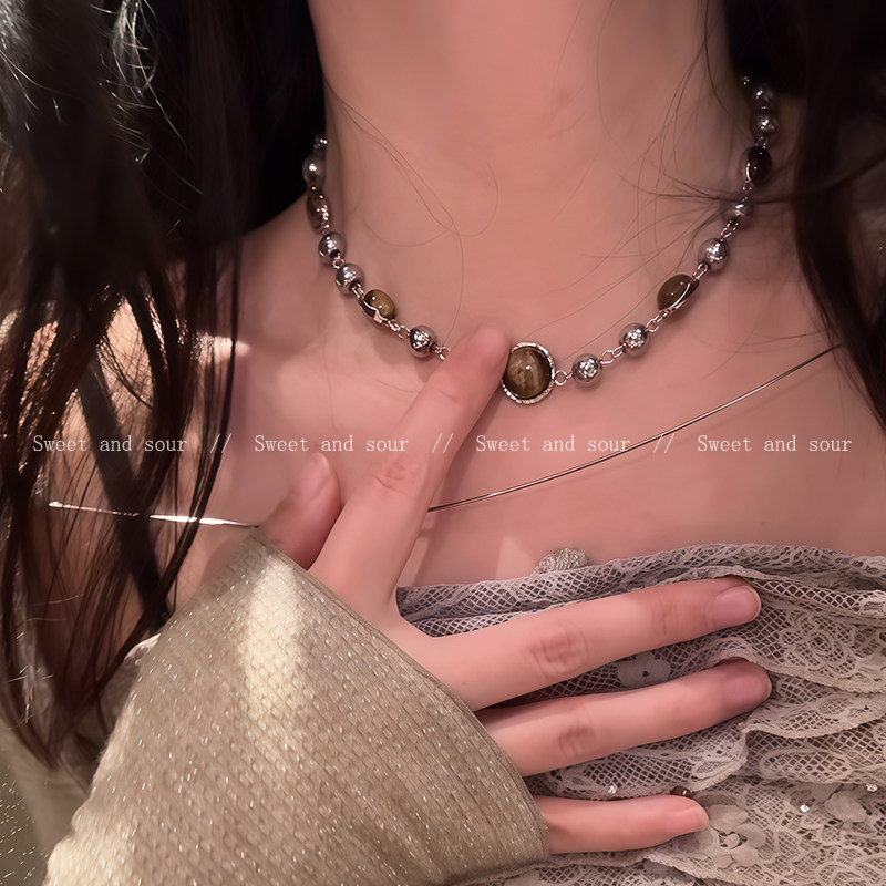 秋冬美拉德串珠虎眼石项链女轻奢小众高级感卫衣毛衣链复古脖颈链
